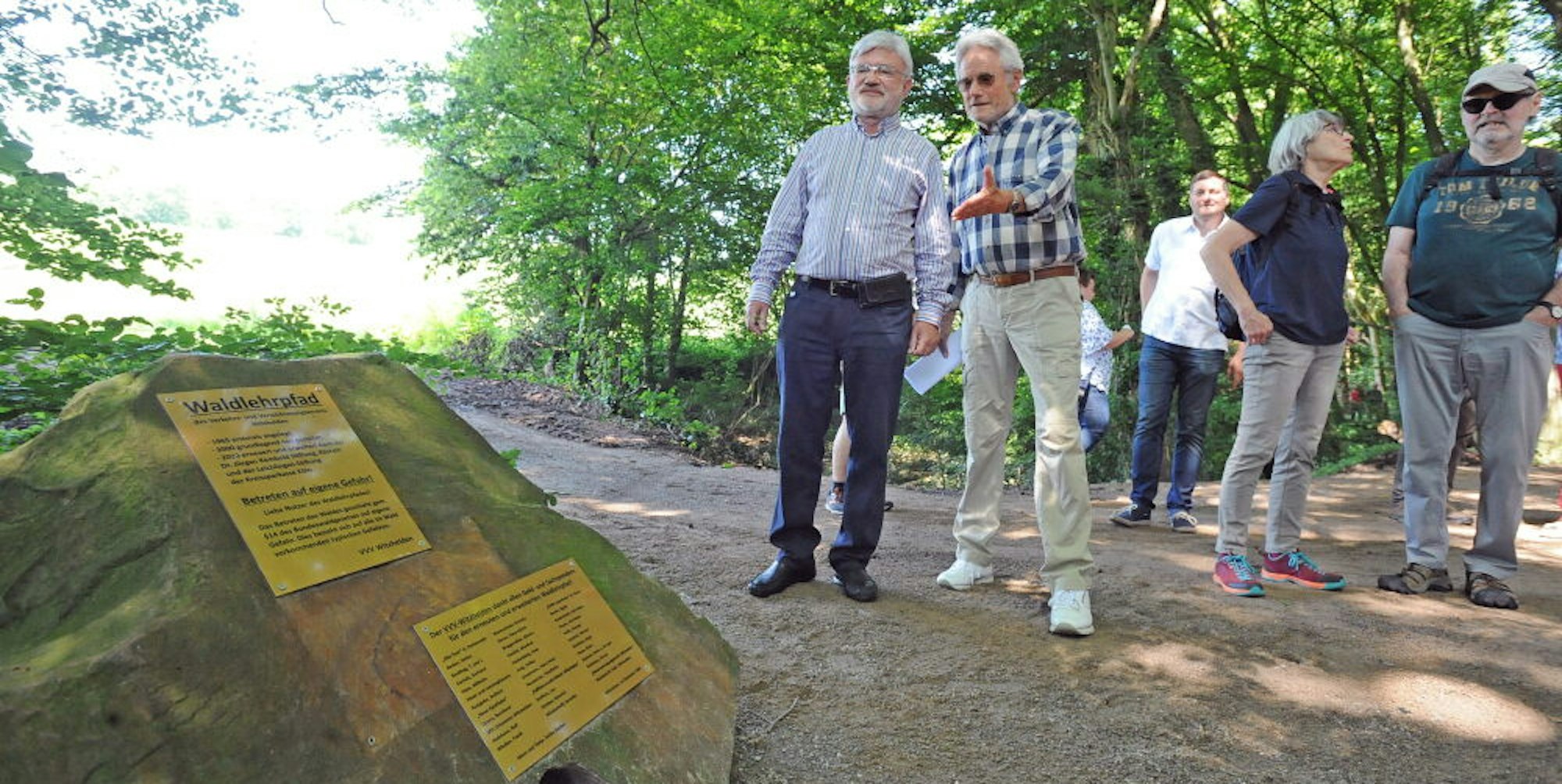 „Spätestens seit der Pandemie ist Wandern wieder bei allen in der Gesellschaft angekommen. Die Menschen haben zurück zur Natur gefunden“, erläutert der privat von Flora und Fauna begeisterte Bürgermeister Frank Steffes beim Eröffnungsrundgang, was man auch an dem großen Andrang von rund 50 Personen sehe, die zur Wiedereinweihung des Pfades gekommen sind.