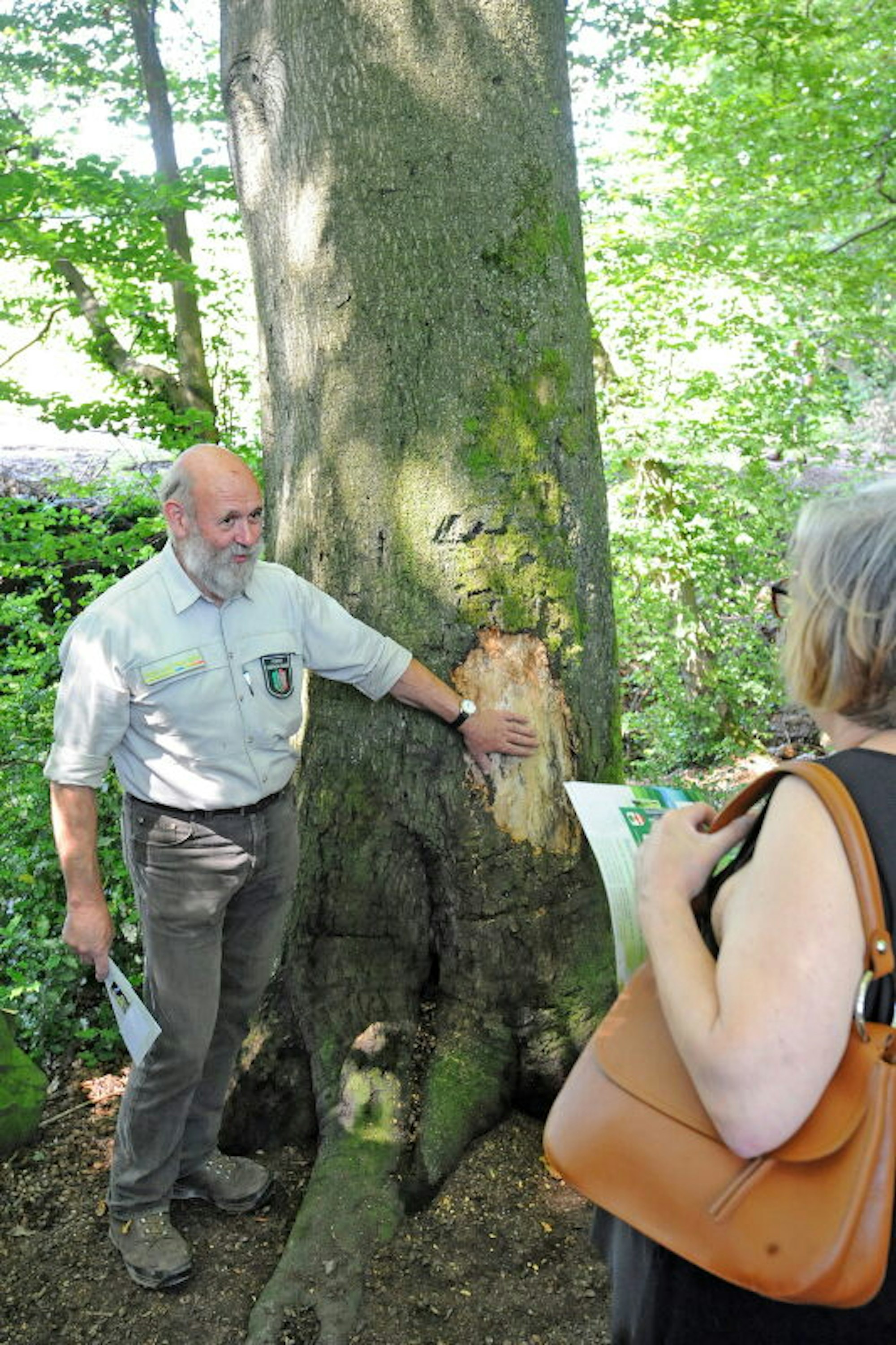 Dieser Baum ist gefährdet, zeigt Förster Karl Zimmermann.