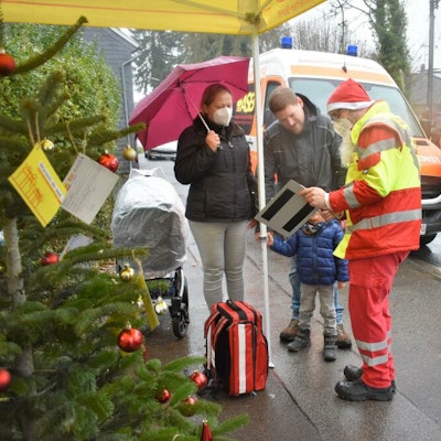 Am 23. Dezember können sich alle Leichlinger Kinder im Alter von drei bis elf Jahren in der Gartenstraße von 15 bis 19 Uhr ein Geschenk beim Weihnachtsmann abholen. Jüngere Geschwister erhalten auch ein kleines Präsent. Die Initiatorin bitten darum, dass die Kinder selbst an den Standkommen, damit sie nicht zusätzlich den Impfstatus der Eltern prüfen müssen. Abstand- und Maskentragepflicht müssen bei der Abholung eingehalten werden. Bereits einen Tag zuvor werden die rund 30 Kinder des Kinderdorf Sankt Heribert beschenkt.