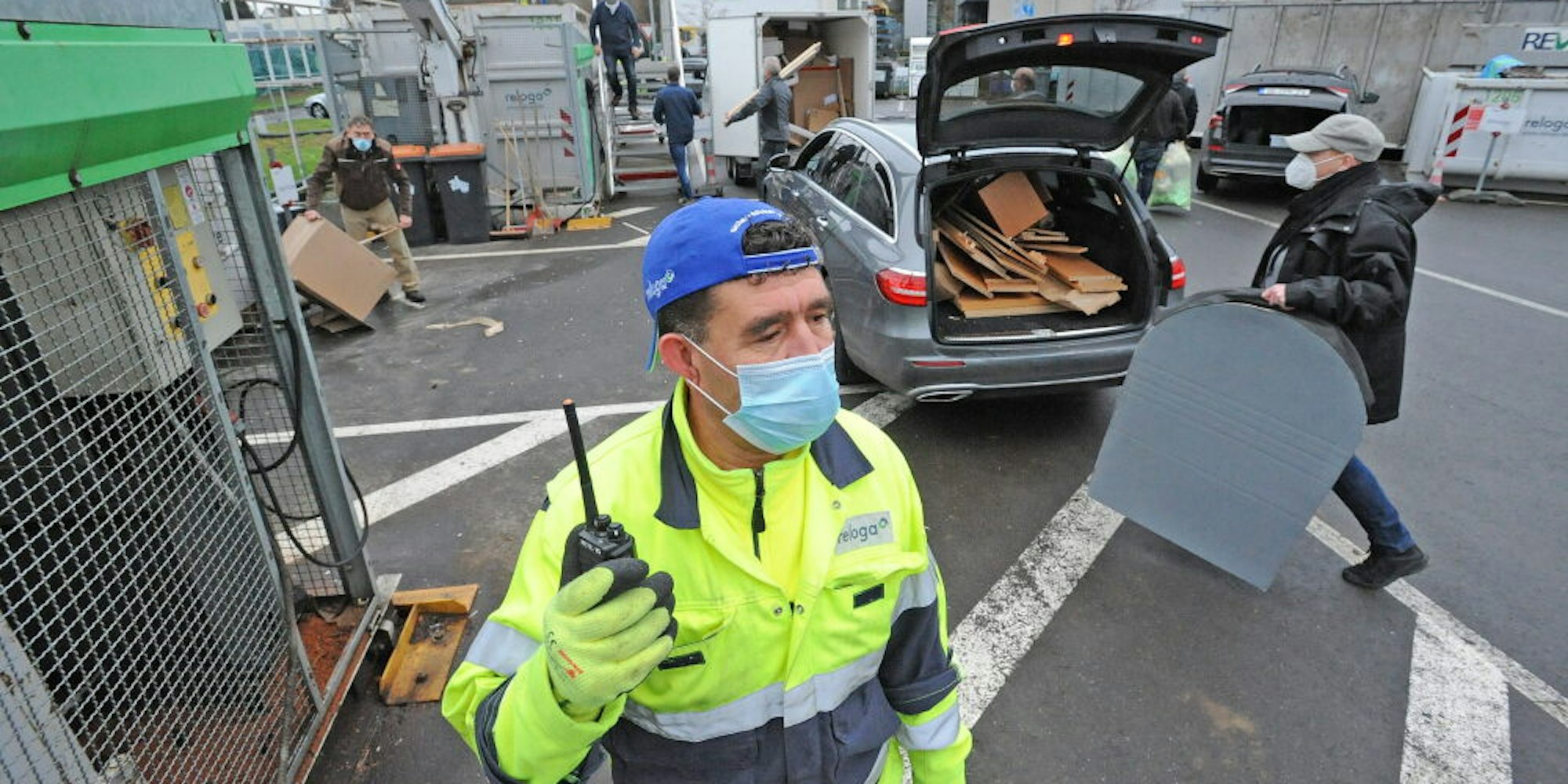 Mit den neuen Öffnungszeiten am Wertstoffhof reagiert der Bav auch auf die Phasen des größten Andrangs. Am Montag regelte Oosroot Alwasher im Funkkontakt mit seinen Kollegen den Zugang. Momentan dürfen wegen der Corona-Schutzbestimmungen nur acht Autos gleichzeitig auf den Platz.