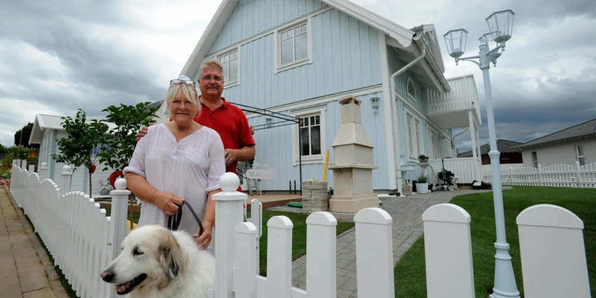 Marion und Uli Lenz ziehen mit ihrem Hund Angel in das Schwedenhaus am Leimbacher Berg.