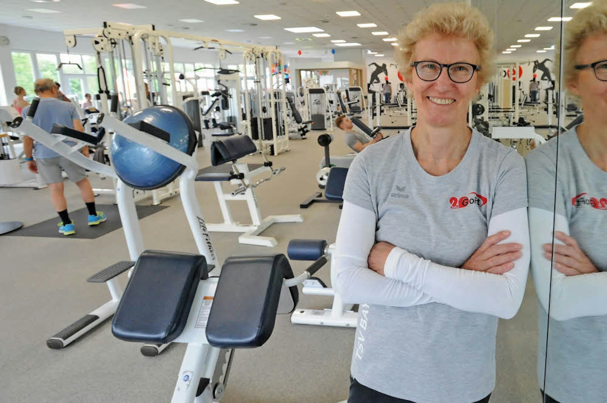 Mitgründerin, gute Seele und „Oma“ des „Go Fit“-Hauses: Studioleiterin Gaby Biesenbach steht im großen Trainigsraum.