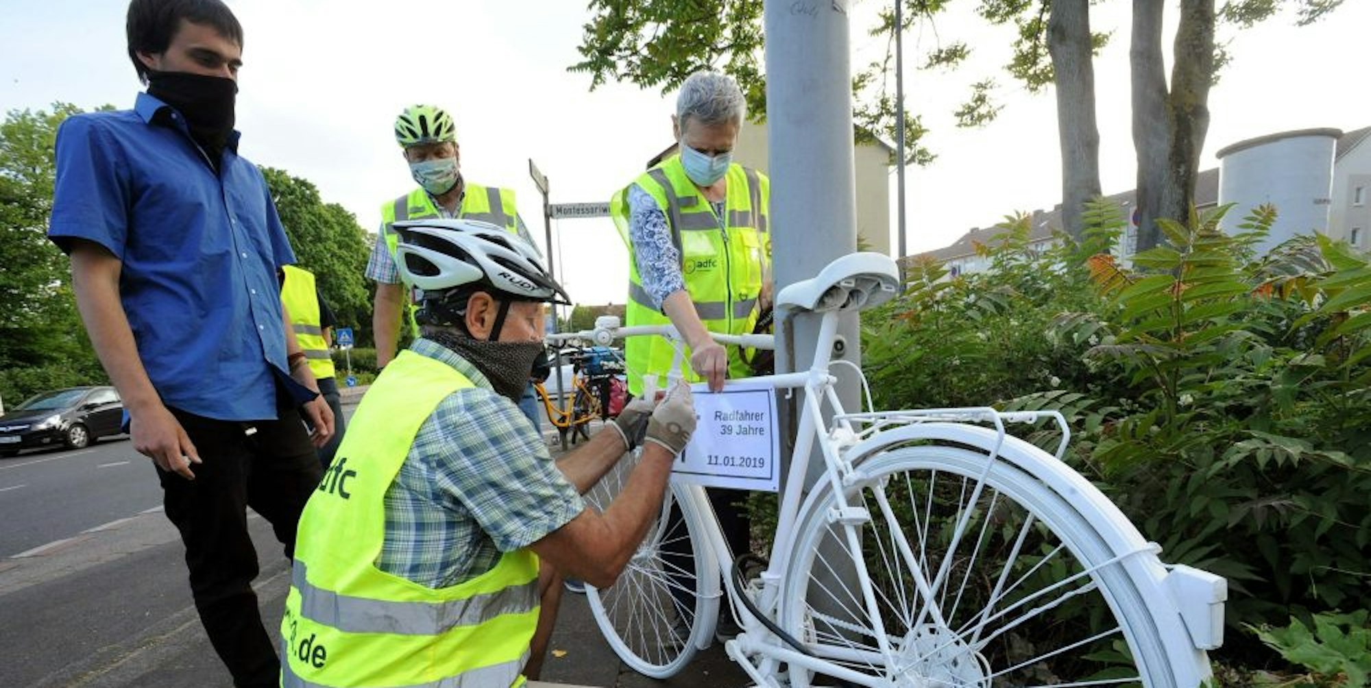 Leverkusen – Ein komplett weiß lackiertes Fahrrad lehnt seit Mittwochabend an einem Laternenmast an der Robert-Blum-Straße vor der Kreuzung mit dem Montessoriweg. Die Installation, die der Allgemeine Deutsche Fahrradclub Leverkusen aufgestellt hat, soll an den 39-jährigen Radfahrer erinnern, der bei einem Unfall am 11. Januar 2019 an dieser Stelle tödlich verletzt wurde. Das „Ghostbike“ soll zugleich die Verkehrsteilnehmer zu mehr gegenseitiger Rücksichtnahme und Einhaltung der Verkehrsregeln ermahnen.