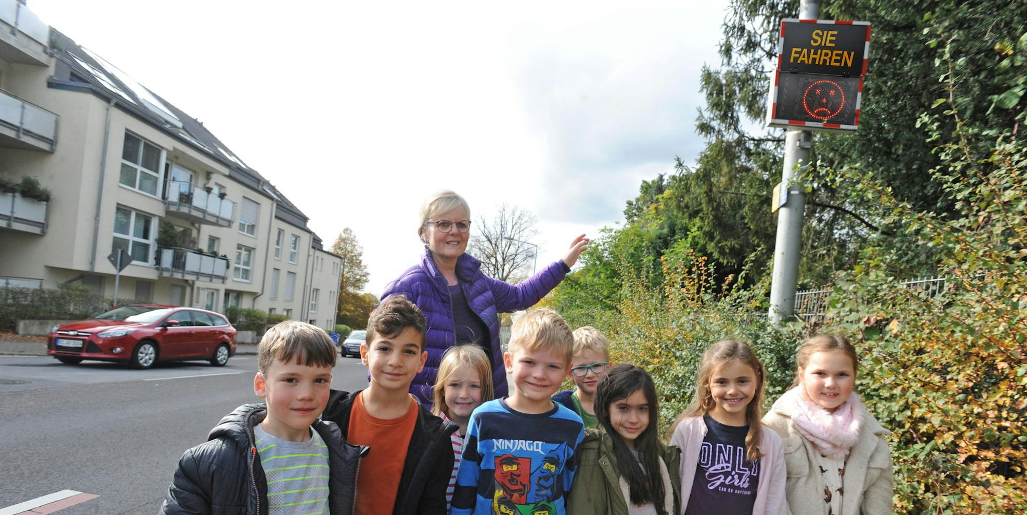 Die katholische Gemeinschaftsgrundschule ist in Schlebusch äußerst beliebt, der Standort an der auch von LKW und häufig viel zu schnell befahrenen Hauptstraße allerdings problematisch. Das belegt auch die Bilanz des mobilen Blitzgerätes, das zu Schuljahresbeginn im August drei Tage lang vor der Schule stand: Insgesamt 554 Mal hat das Gerät hier ausgelöst, von den 529 verwertbaren Fotos waren 522 im Bereich eines Verwarngeldes, sieben Fahrer waren deutlich zu schnell und mussten ein Bußgeld zahlen. Dennoch haben sich Eltern vehement gegen Pläne gewehrt, die baufällige Schule zu verlegen. Sie soll nun abgerissen und an selber Stelle wieder aufgebaut werden. Umso wichtiger ist es, Autofahrer immer wieder an die Kinder zu erinnern.