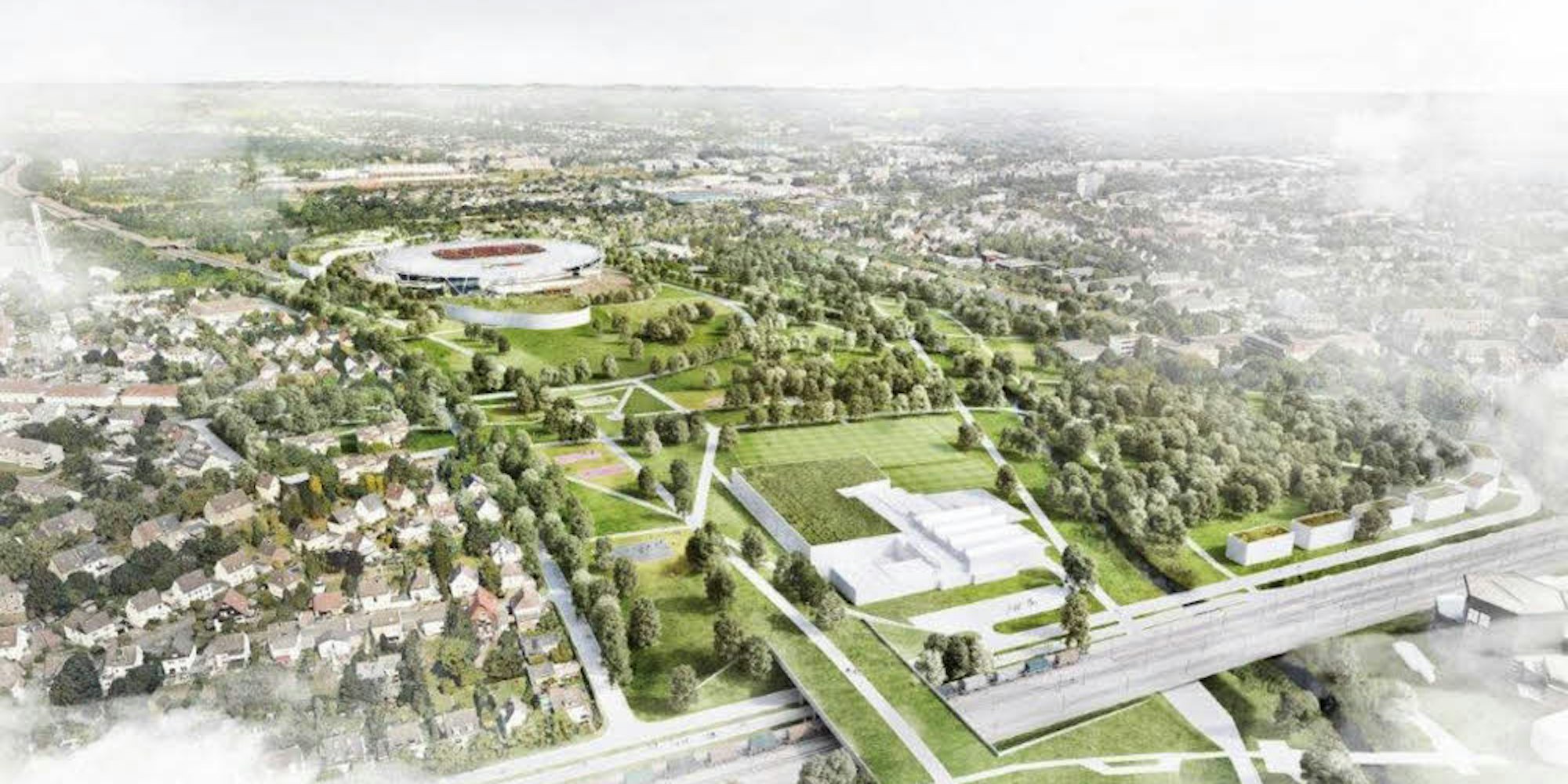 Wenn die A1 – wie es das Land Nordrhein-Westfalen offiziell dem Bund vorgeschlagen hat – zwischen Wasserturm und Autobahnkreuz Leverkusen in einem kurzen Tunnel unter der Erde verschwindet, soll darüber eine großzügige Grünanlage entstehen, zwischen Dhünn und der Siedlung Neuenhof, zwischen BayArena und Europaring.