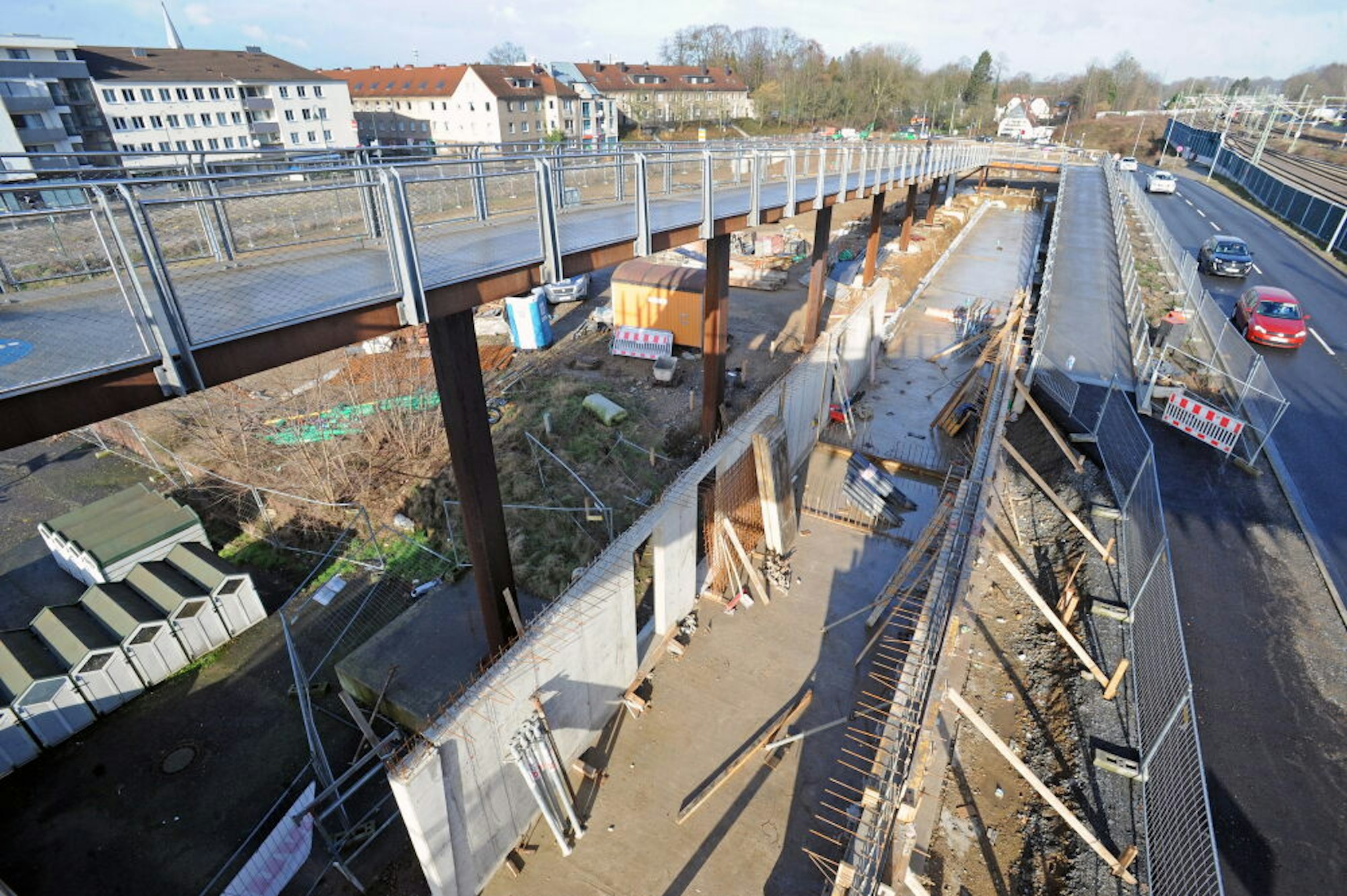 Innerhalb der Rampe zur Bahnhofsbrücke entsteht gegenwärtig das Fahrradparkhaus, das im Herbst fertig sein soll.