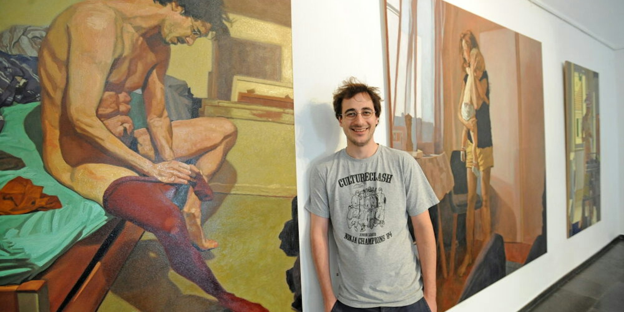 - Unter dem Titel „Menschen mit Würde, aber auch müde und/oder nackt“ beschäftigt der Künstler Nicolas Schützinger sich mit dem menschlichen Innenleben.