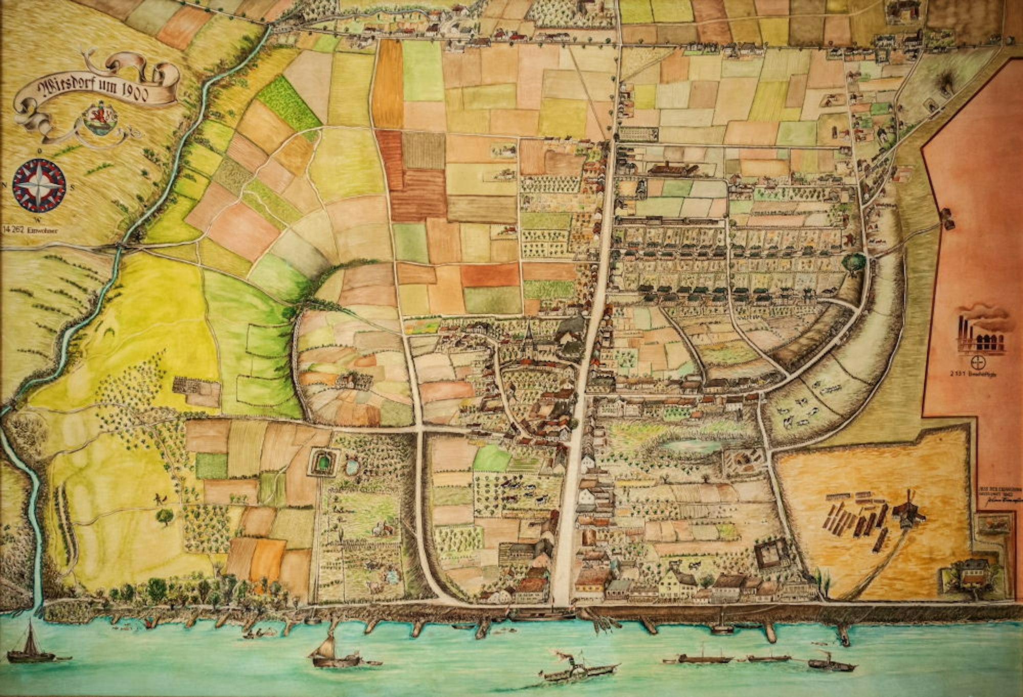 Das Wiesdorf des Jahres 1900, 1962 vom Wipperfürther Johann Wipperfürth aus der Erinnerung heraus gemalt, gehört ebenso zur Ausstellung.