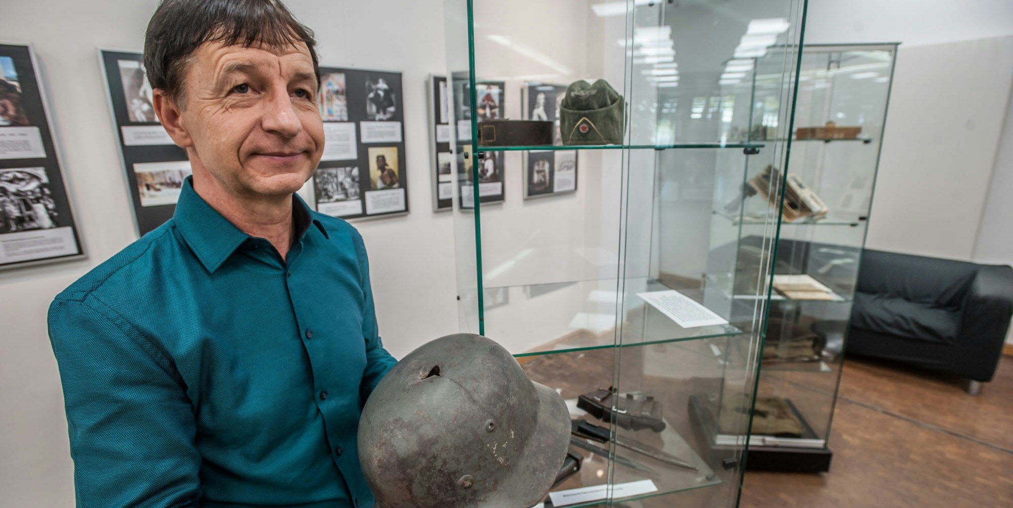Darius Andruszkiewicz erinnert mit seinen Exponaten in der Stadtbücherei an den Ausbruch des Zweiten Weltkriegs.