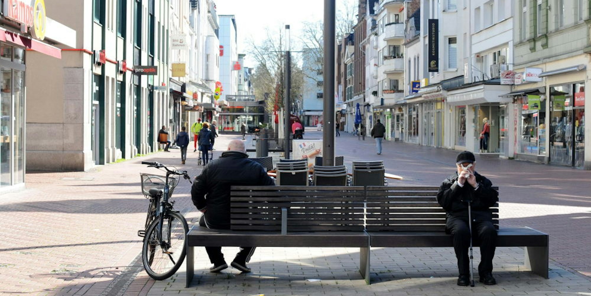 Wo Gastronomiebetriebe ihre sonst im Lokal servierten Gerichte zum Mitnehmen nach draußen verkauften, sah man vereinzelte Menschen in der Nähe auf Bänken sitzen und essen. Vereinzelt mussten Kräfte des Ordnungsamtes einschreiten und die amtlich verfügte Geschäftsschließung durchsetzen, wo Inhaber geltende Ausnahmeregelungen allzu großzügig für sich interpretierten. So wollte auch ein Blumenhändler sein Geschäft als Gartenmarkt eingestuft sehen.