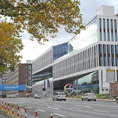 Früher Kaiser-Wilhelm-Allee, jetzt Friedrich-Ebert-Straße: In Covestros neuem Hauptquartier wird vieles anders. Derzeit arbeitet noch kaum jemand dort.
