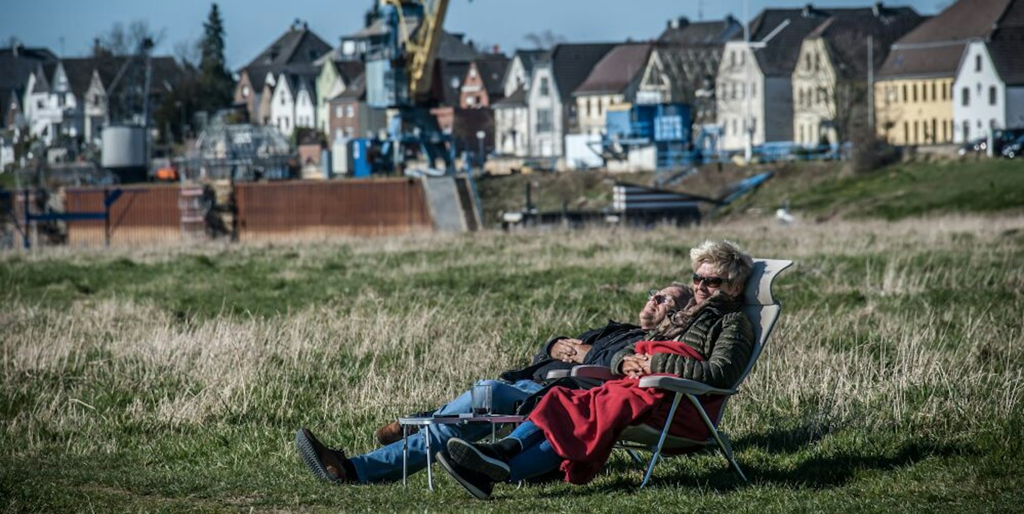 Doch nicht nur Leverkusener hatten sich an der Rheinpromenade versammelt: Das Ehepaar Bolte ist extra aus Hattingen angereist, um den Ausblick auf Rhein bei Hitdorf zu genießen. „Wir haben diesen Ort vor ein paar Jahren entdeckt und fahren seitdem immer wieder mit dem Motorrad hierher“, erzählt er. Sogar zwei Klappstühle haben die beiden eingepackt, um es sich am Rhein gemütlich zu machen. „Die Sonne macht alles erträglicher und wir können für ein paar Stunden abschalten. Man erwischt sich dennoch immer wieder dabei, wie man aufs Handy schaut, um Nachrichten zu lesen.“ Insbesondere die steigenden Corona-Neuinfektionen bereiten ihm Sorgen. „Ich kann nicht verstehen, warum die Politik jetzt die Maßnahmen lockern möchte. Wir werden trotzdem weiterhin im Supermarkt Masken tragen und aufpassen.“