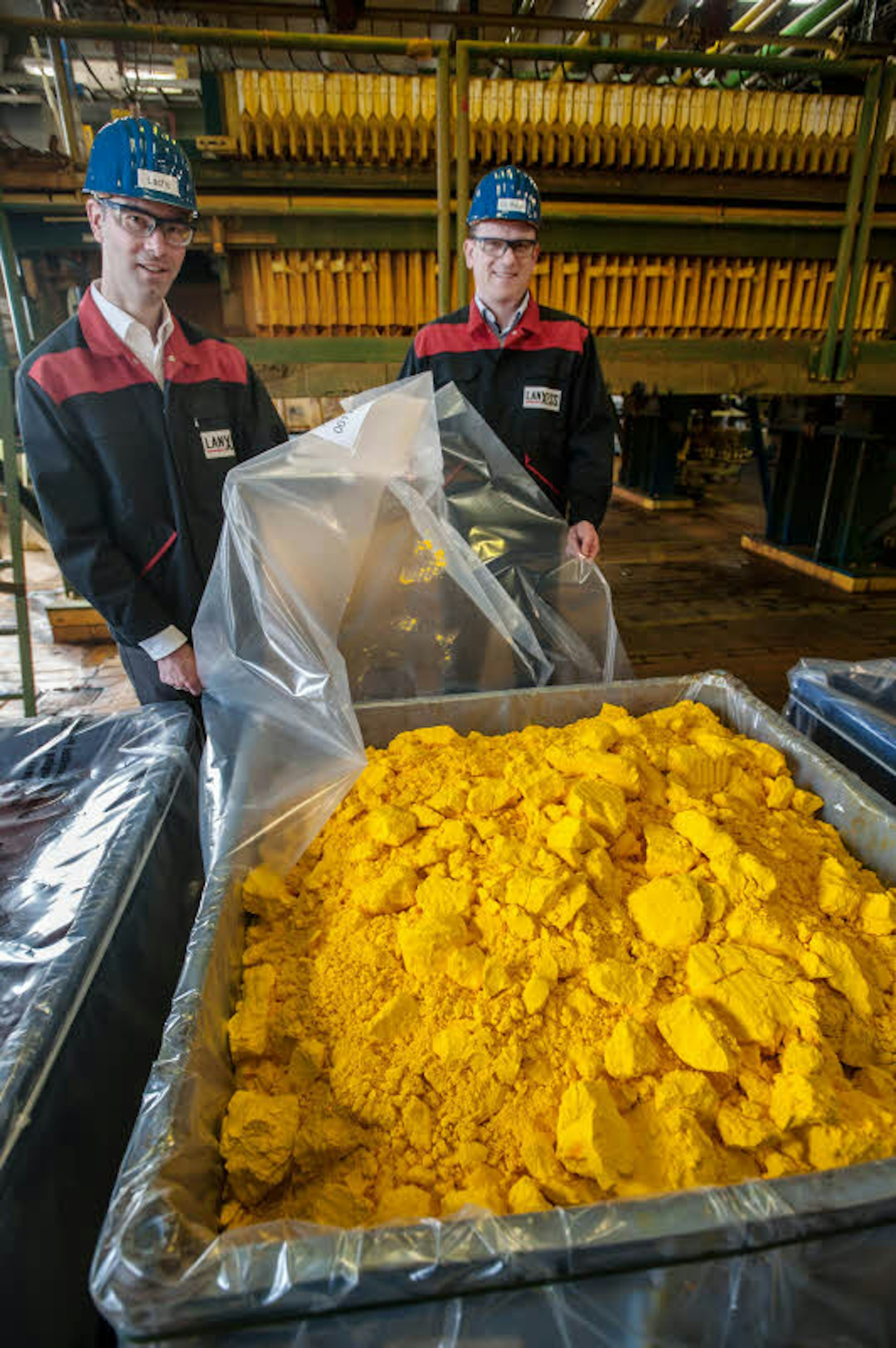 Leverkusen – Geld macht nicht glücklich. Gelb macht glücklich. Manchmal lässt sich mit Gelb Geld verdienen. Das macht auf jeden Fall glücklich. Axel Lache und Michael Raab haben das Erbe von Carl Leverkus angetreten. Lache leitet und Raab verantwortet die Produktion im Farbstoffbetrieb, den Bayer einst zu Lanxess aussortiert hatte: nicht ertragreich genug.