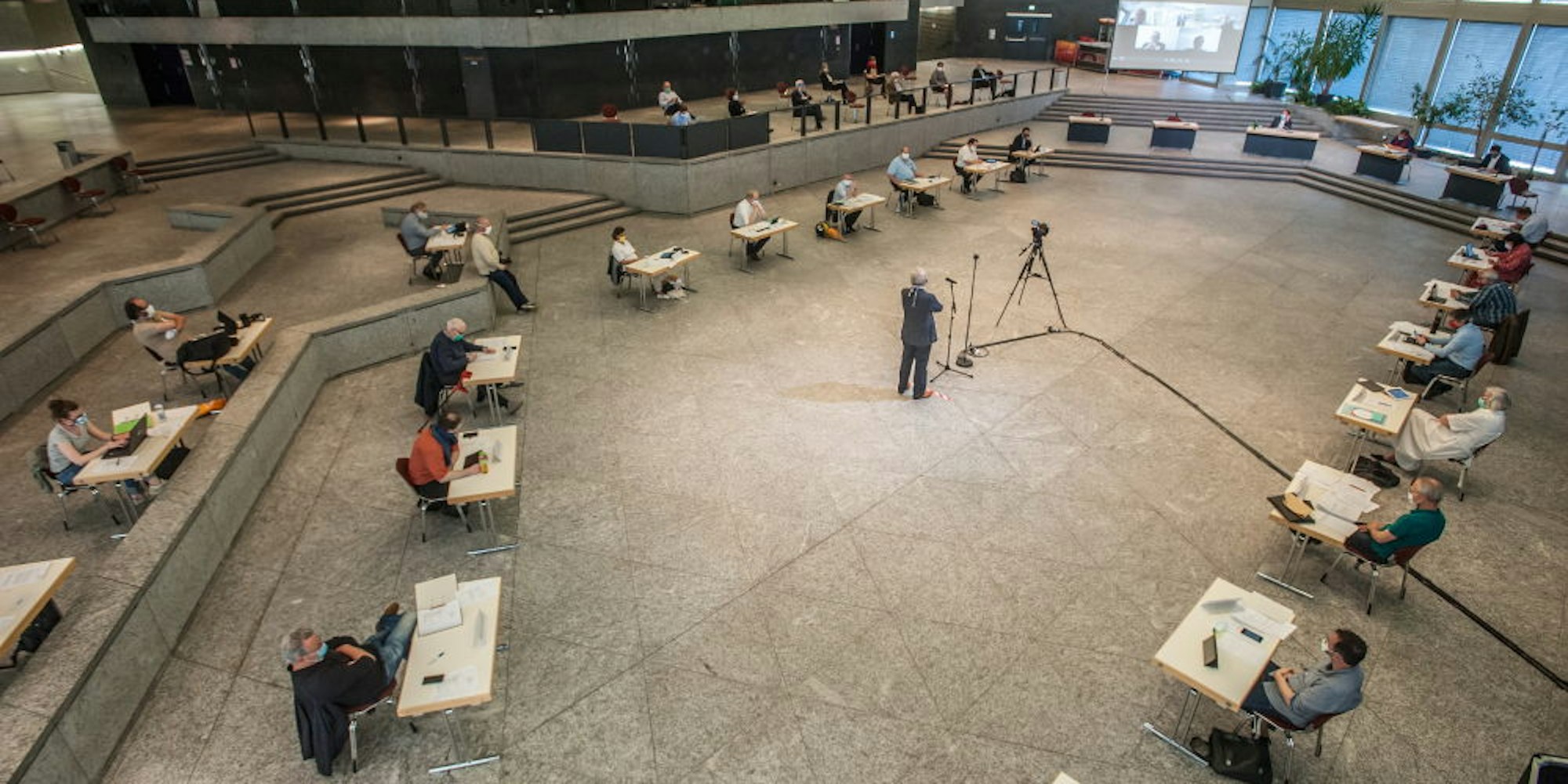 Alles auf Abstand: Der Hauptausschuss tagte am Donnerstag im Terrassensaal des Forums.