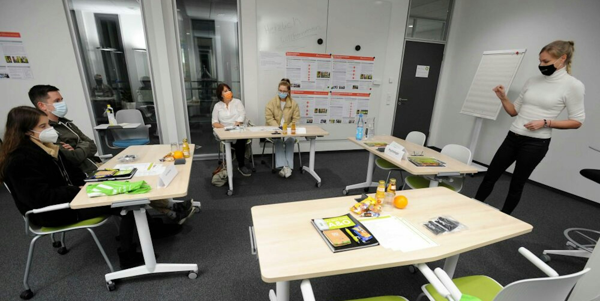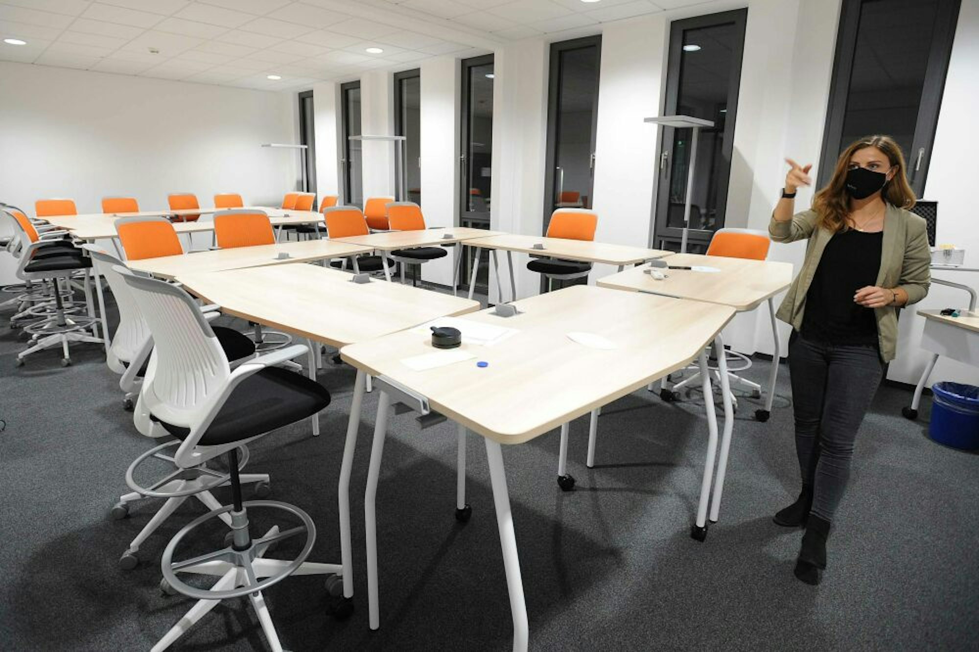 Standortmanagerin Marie-Christine Herbst führt durch die modernen Räume in Manfort.