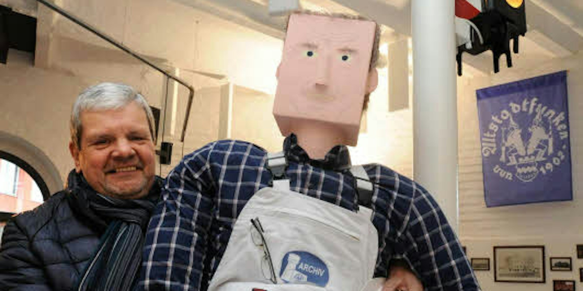 Die Opladener denken sich jedes Jahr für ihren Nubbel etwas Besonderes aus. Er ähnelt immer einem Vereinsmitglied. In diesem Jahr ist es Archivar Herbert Klein, der sich schwer ins Zeug legt, um im Funkenturm eine Anlaufstelle mit historischen Dokumenten zu dem Karnevalsverein aufzubauen. Da werden Regale gebaut, Papier laminiert und sortiert. „Das ist sehr viel Arbeit, die Dokumente seit 1902 aufzubereiten“, sagte der Kommandant der Altstadtfunken.