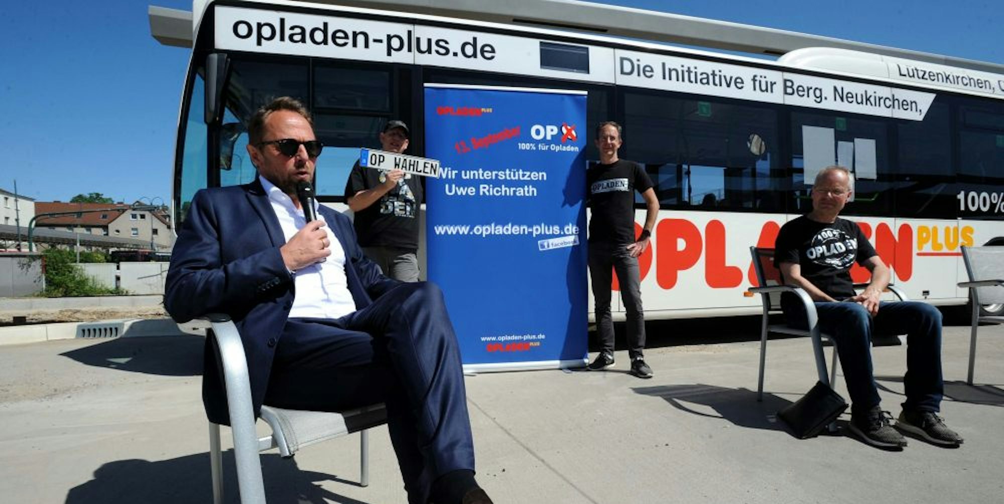 Leverkusen – Markus Pott sieht zufrieden aus, wie er da neben dem Oberbürgermeister auf dem Gelände des künftigen Busbahnhofes sitzt: Hinter ihm ein Linienbus mit dem Aufdruck seiner Partei „Opladen Plus“. Über ihm die Sonne am wolkenlosen Himmel. In einer besseren Umgebung kann man nicht über die Kommunalwahl und das sprechen, was Opladen Plus vorhat.
