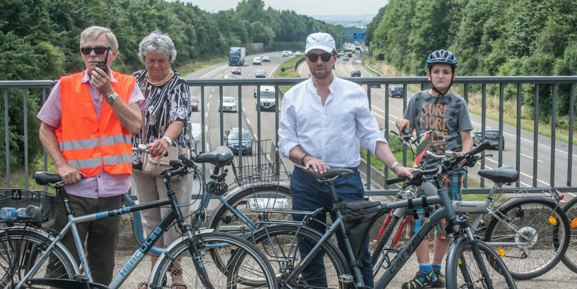 Im Juli demonstrierte die Initiative von Sprecher Peter Westmeier (mit Funkgerät) gegen die Raststättenpläne an der A 1 mit einer Menschen- und Fahrradkette.
