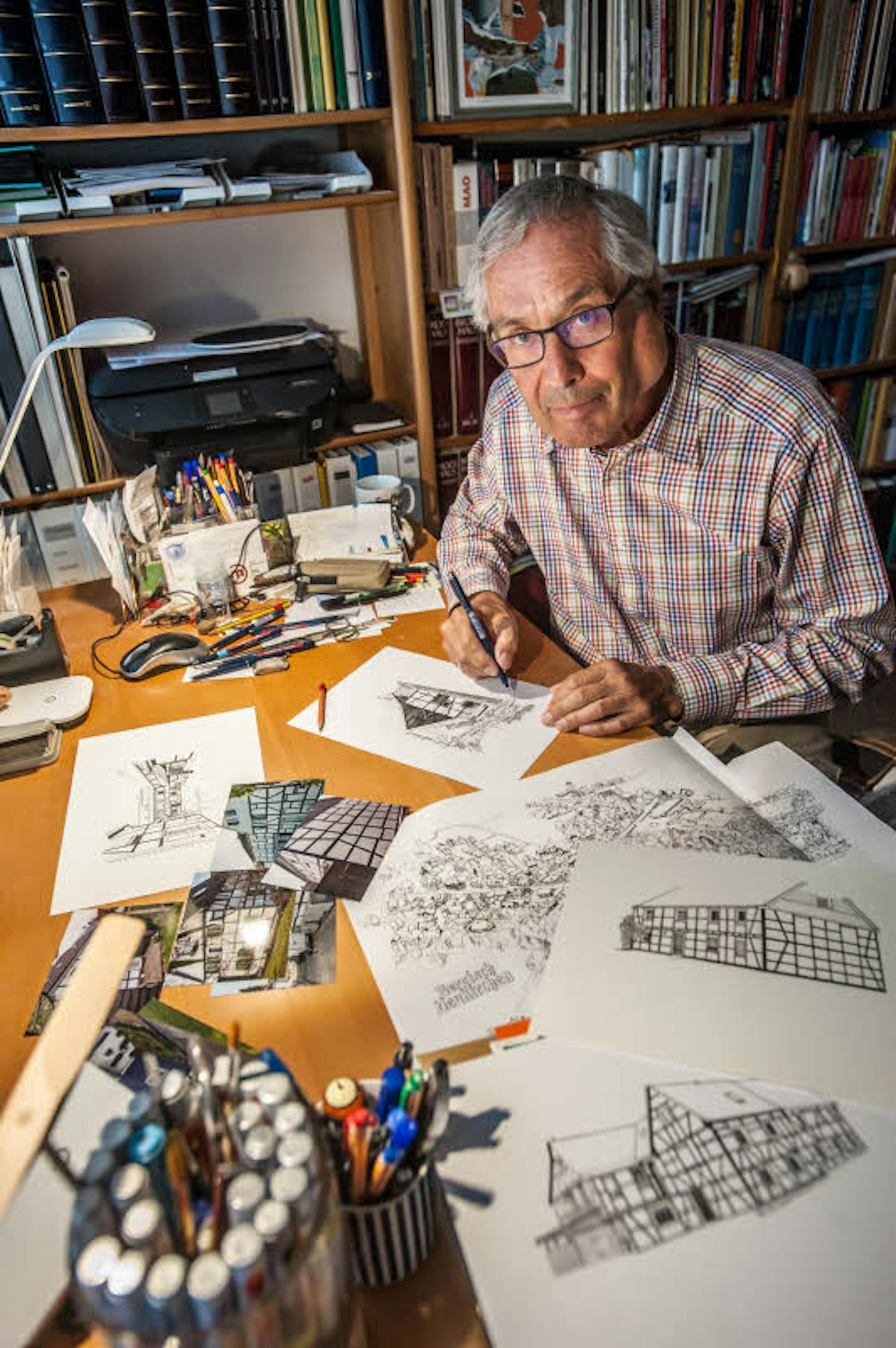 Eberhard Kreye zeichnet alle Fachwerkhäuser in Bergisch Neukirchen .