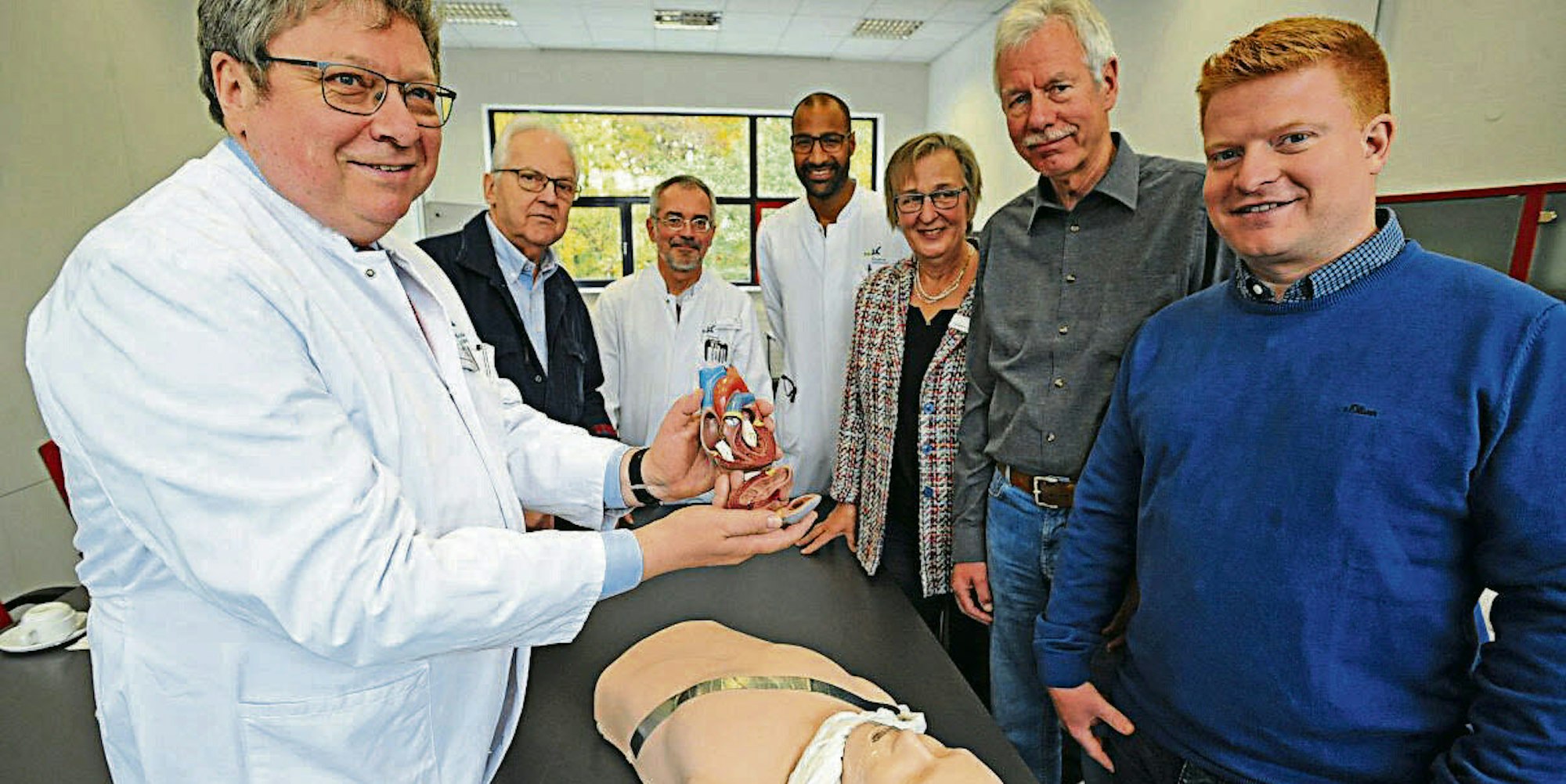Sie informieren über den plötzlichen Herztod (v. l.): Peter Schwimmbeck, Claus Hintsch, Bernd Weidmann, Marvin Addo, Gabriele Andreae, Ulrich Sterzenbach und Christoph Liebelt.