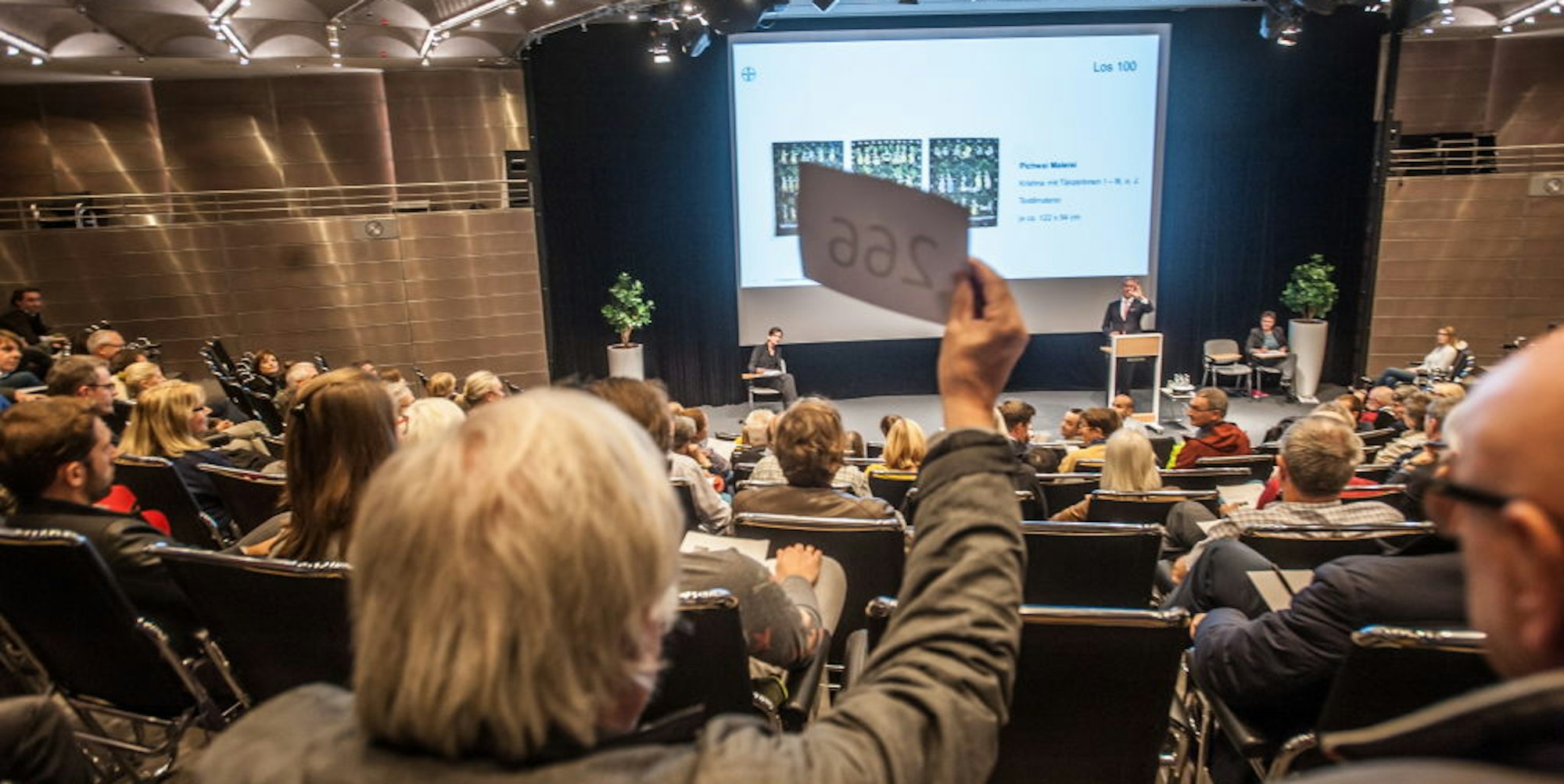 Hoch dem Zettel: Knapp 70 Kunstwerke aus dem Kunstbesitz des Konzerns kamen im Baykomm unter den Hammer, bis auf zwei wurden alle verkauft.