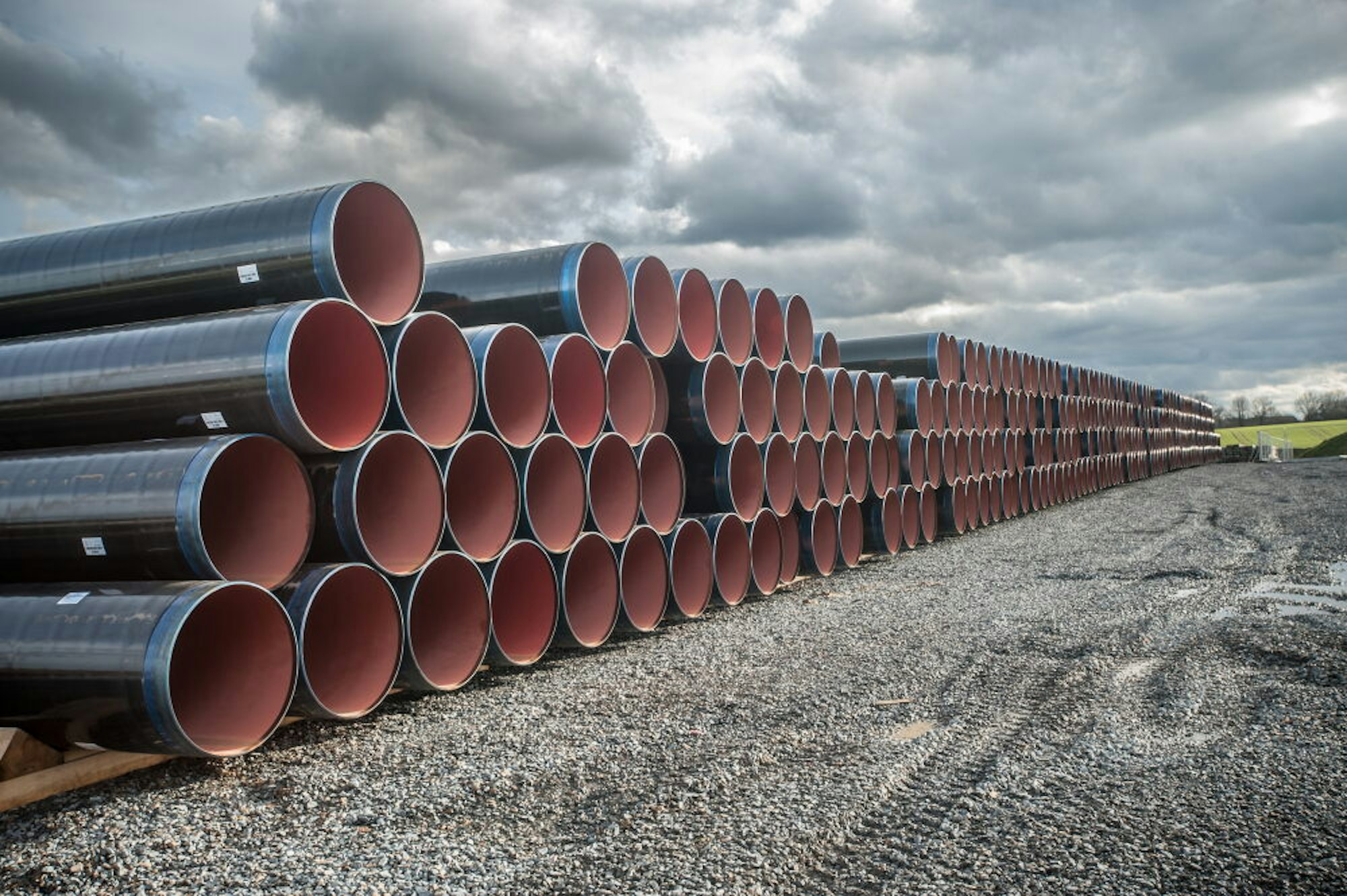 Die großen Rohre warten auf ihren Einbau unter der Erde.