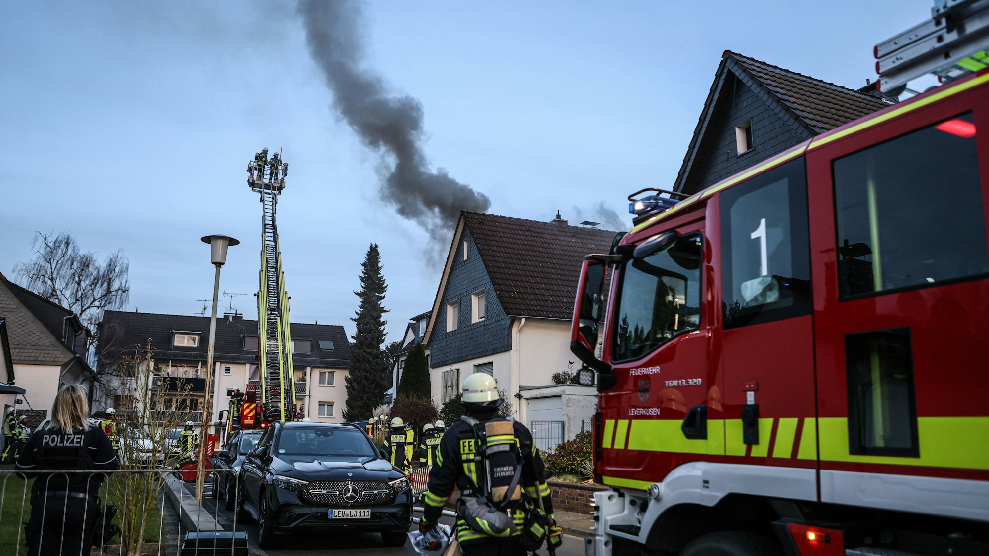 Feuerwehr im EinsatzEinfamilienhaus nach Dachstuhlbrand in Schlebusch vorerst unbewohnbar