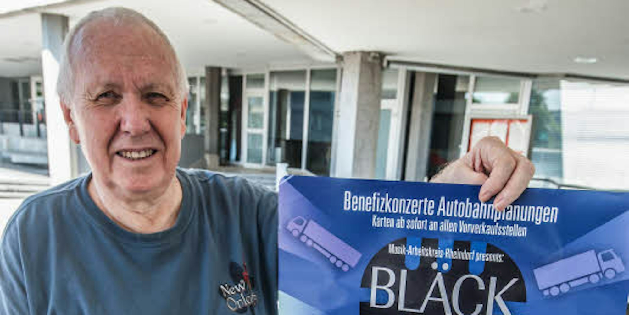 Als Veranstalter tritt ein Musik-Arbeitskreis-Rheindorf auf, ein Dreigestirn, bestehend aus Hagen Norhausen, Bernd Neufeind und Erhard Schoofs. Und der Topact des Benefizkonzertes zur Autobahnplanung sollen die Bläck Fööss sein, zu denen Schoofs über den Sänger und Gitarristen Pit Hupperten aus Opladen einen direkten Draht hat. „Die spielen hier natürlich nicht aus Langeweile, weil sie nichts zu tun haben, sondern weil sie auch hinter unserem Anliegen stehen“, sagt Schoofs.