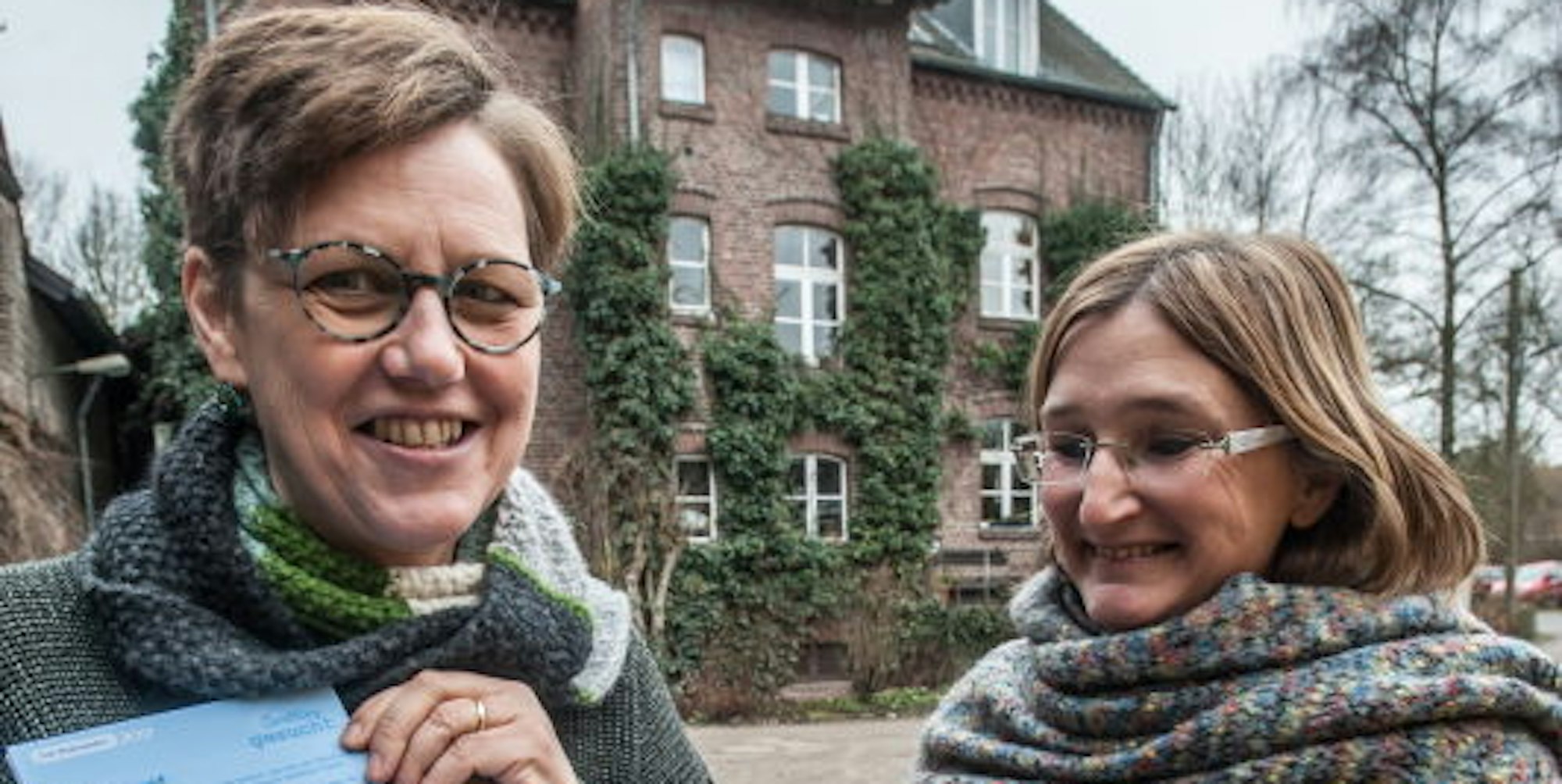 Ute Pfeiffer-Frohnert (links) und Ute Rommeswinkel mit dem Mitmachbuch des Naturguts.