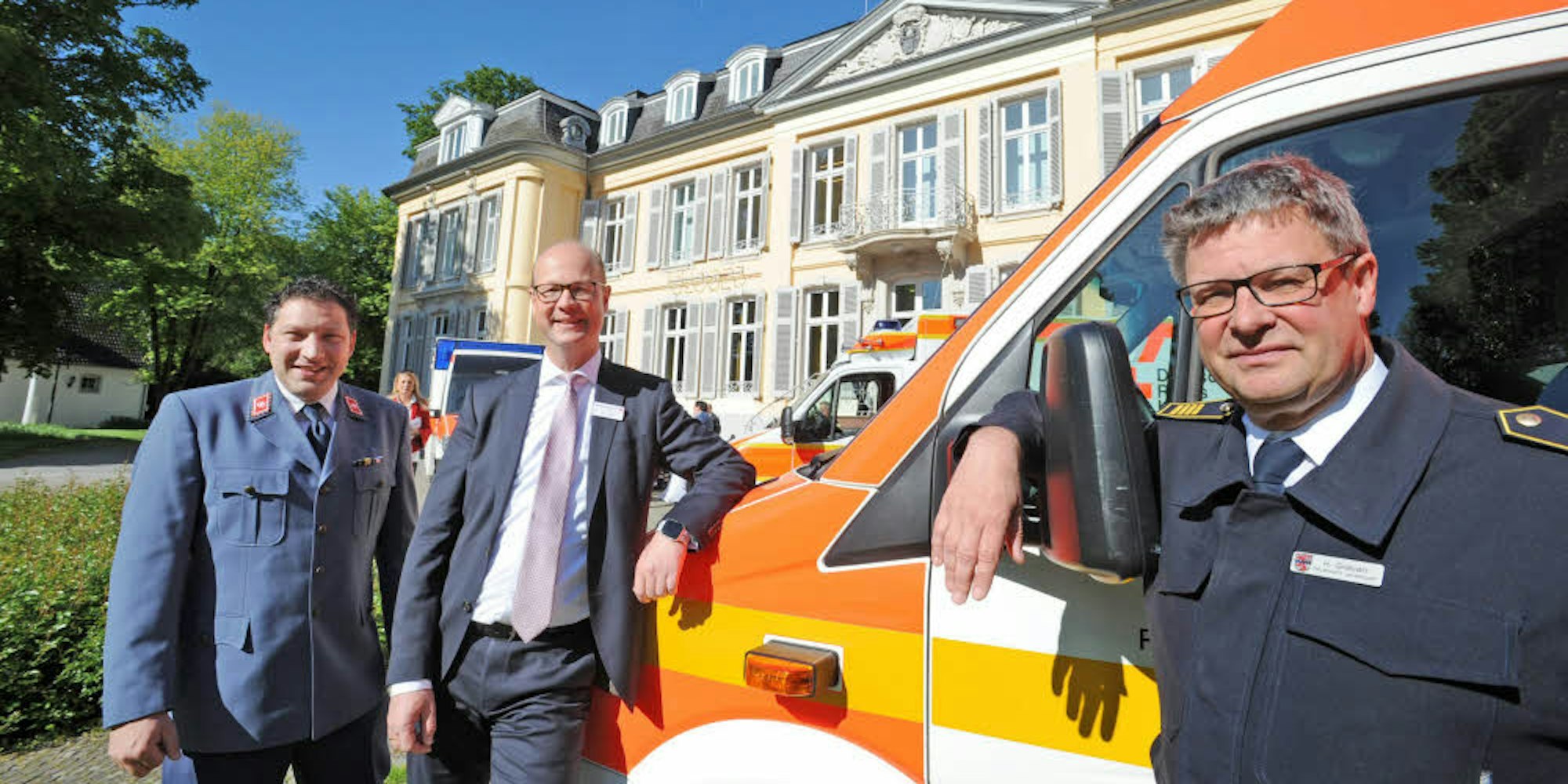 (v.l.) Malteser-Geschäftsführer Tim Feister, DRK-Vorsitzender Markus Grawe, Feuerwehrchef Hermann Greven.