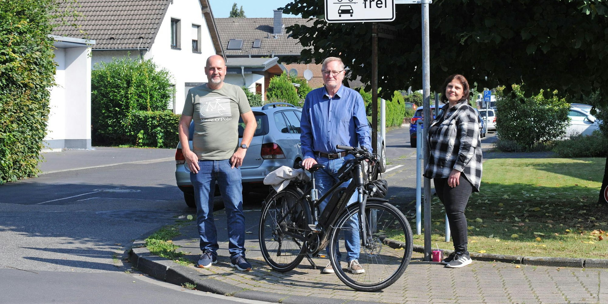 Ralf Uttich (l.) mit Heinz-Jürgen Pröpper und Conchita Laurenz (Fachbereich Ordnung und Straßenverkehr) am Amselweg.