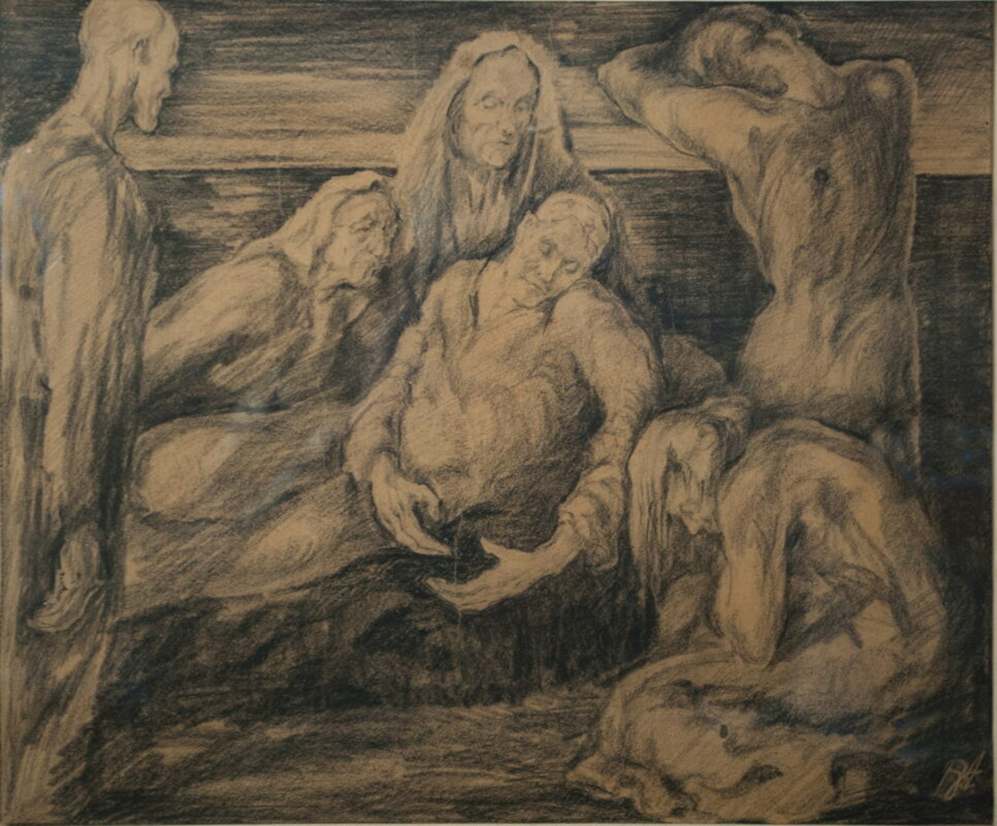Sie weiß: Um malen zu können, habe er seinerzeit erfinderisch sein müssen. Denn Eigentum und Sonderrechte habe es nicht gegeben für die Lagerinsassen. Walter Bernstein war somit gezwungen, heimlich Packpapier abzuzwacken und Kohlestückchen aus den Lagerfeuern einzustecken und anzuspitzen. Die minimale Grundausrüstung zum Zeichnen. Schwarz und Grau auf, mehr oder weniger, Weiß. Für Details und Konturen nahm er seinen Daumennagel, den er übers Papier gleiten und Kohle abschaben ließ. „Er hat mir oft erzählt, dass die Daumenkuppe am Ende eines jeden Tages rabenschwarz war“, sagt Christel Zaun.