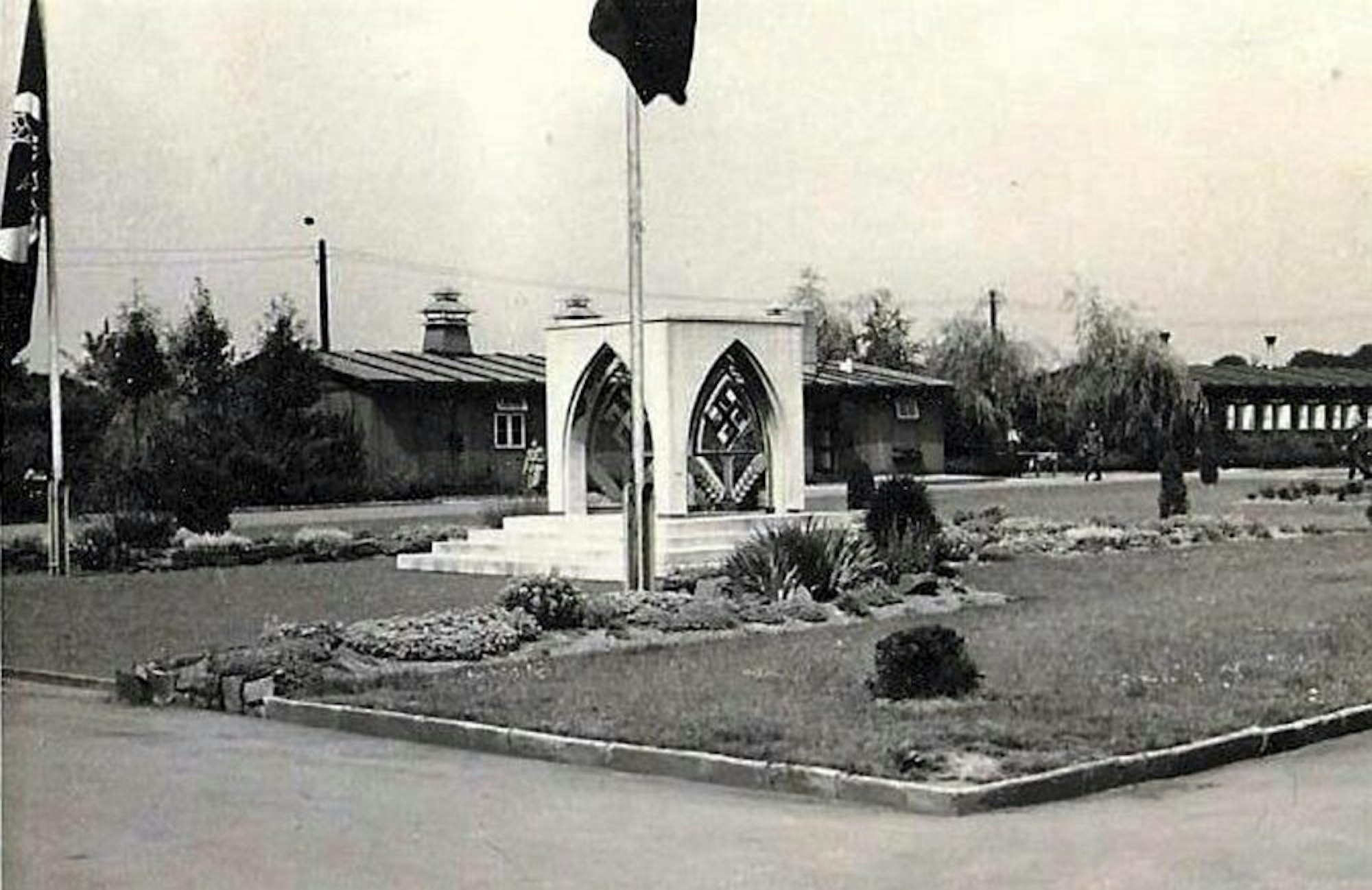 Das Reichsarbeitsdienstlager nahe des Manforter Stadions wurde 1939 eröffnet. Rechts das Eingangstor.