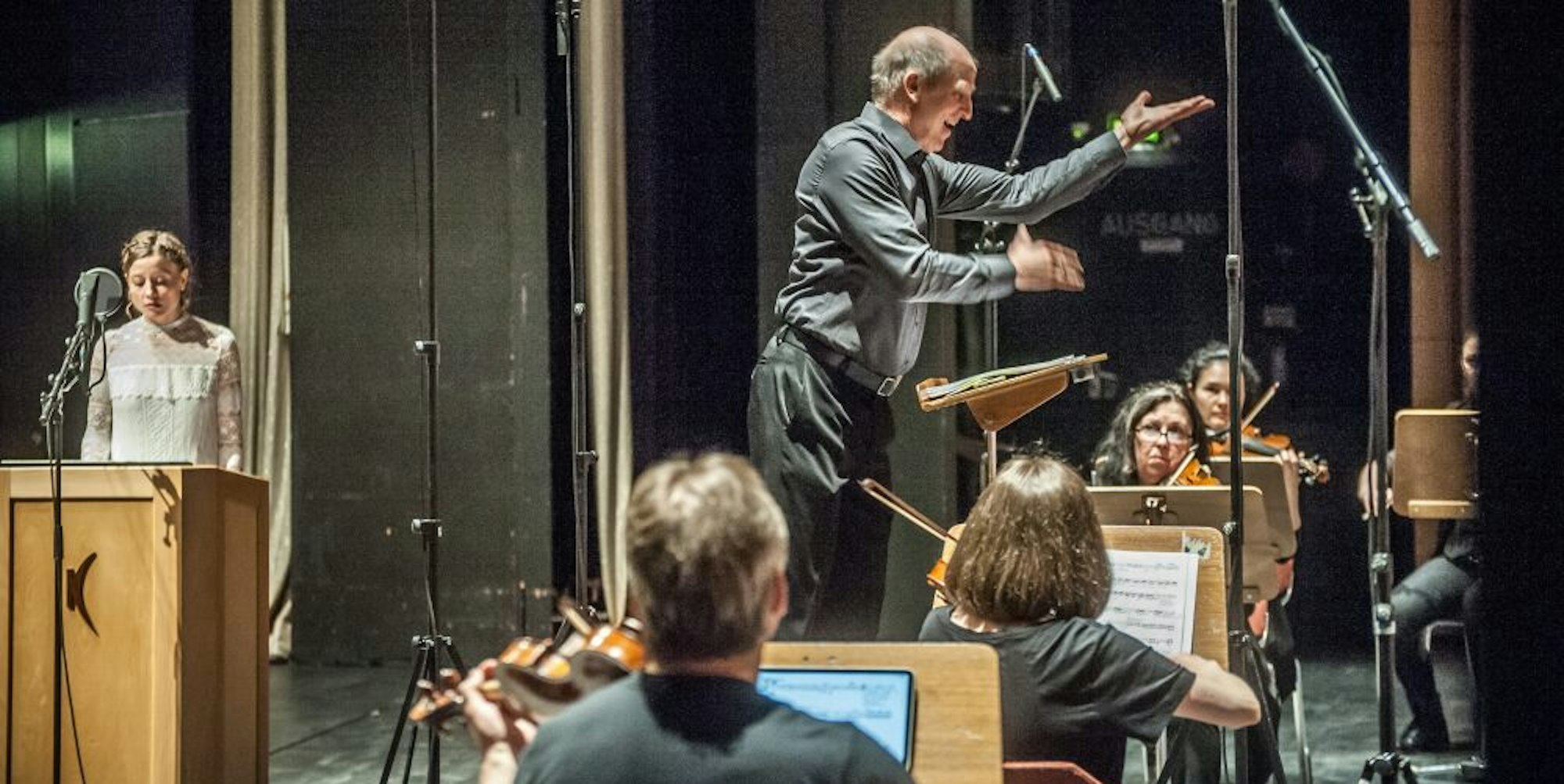 Dirigent Werner Erhardt und sein Ensemble taten sich unter anderem mit Poetry Slammerin Leticia Wahl (links) zusammen.