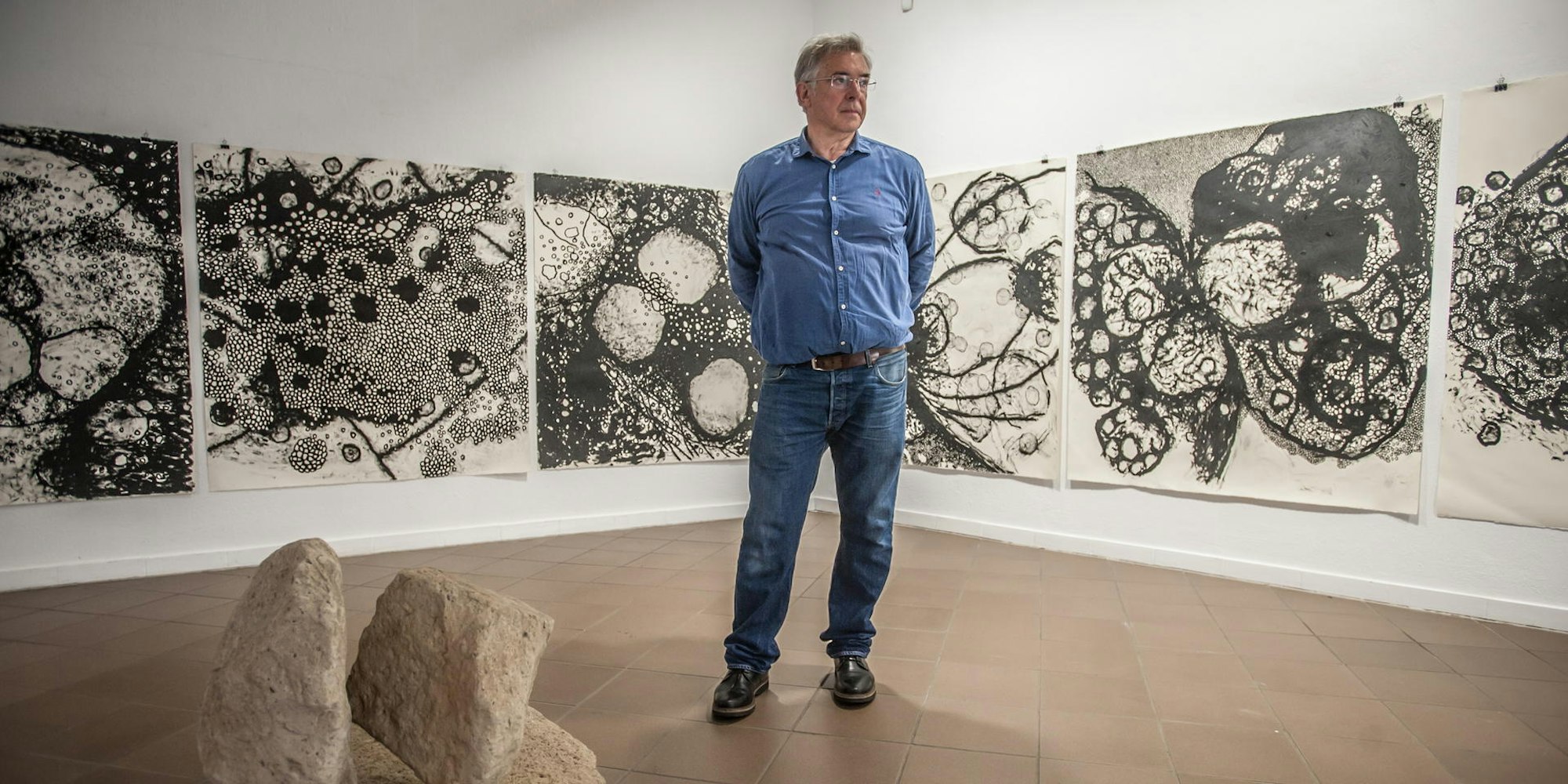 Die Bilder zeigen Strukturen in Kreisform. Klein. Immer größer werdend. Riesig und einnehmend. Damit gemahnen sie an Zellen als kleinste Einheit des Lebens einerseits und an Himmelsgestirne andererseits. An Dinge also, die diese Welt und das Universum seit jeher ausmachen. „Der Anblick seiner Arbeiten verursacht sofort einen kleinen Schlag in den Magen“ , sagt Susanne Wedewer vom Kunstverein dazu.
