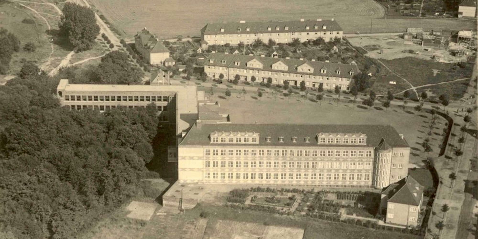 Früher im Grünen, heute im Stadtzentrum: das Gebäude der heutigen Realschule am Stadtpark.