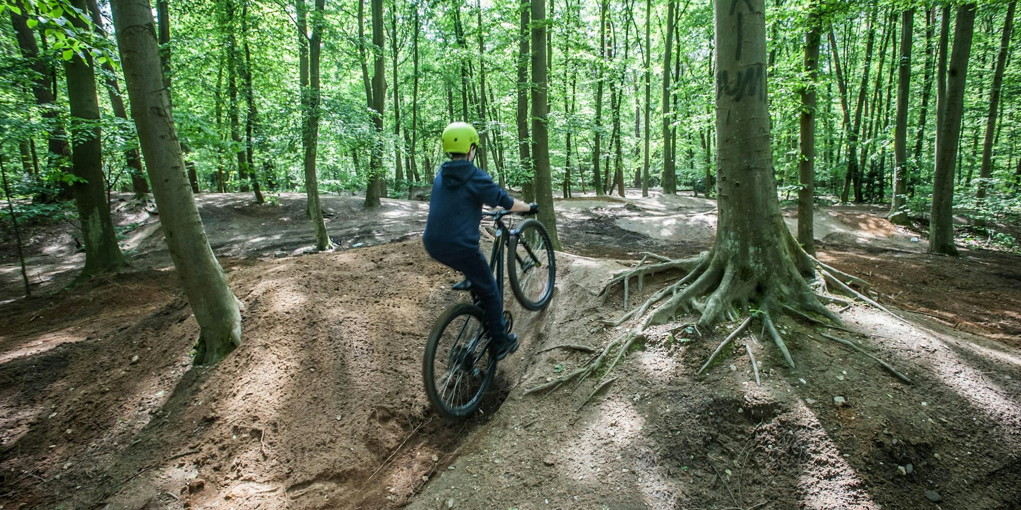 Leverkusen – Viele Jahre lang habe Zweiräder Furchen in den weichen Waldboden gefahren, haben Kinderhände Hügel zu Sprungschanzen geformt. Nun sind einige Vierräder in Form von Baggern und Walzen im Dünnwalder forst aufgefahren, um das, was zu einer beliebten Mountainbike-Strecke geworden ist, wieder platt zu machen. „Versicherungstechnische Gründe“, sagt ein Mitarbeiter des Forstamt Köln vor Ort. Er habe die Anweisung, alle Hügel platt zu machen. „Bei dem Radparcours im Dünnwalder Forst handelt es sich um eine illegal angelegte Strecke. Die Stadt Köln hatte bereits mehrfach angekündigt, dass sie, wenn ihr solche Strecken in den Wäldern bekannt werden, diese zeitnah entfernen wird“, begründet das Forstamt die Maßnahme auf Anfrage. „Die Strecke wird wieder eingeebnet und der Natur für die weitere Vegetationsentwicklung zurückgegeben.“ Obwohl die Strecke in direktem Anschluss zur Waldsiedlung liegt, ist sie im Landschaftsschutzgebiet auf Kölner Stadtgebiet.