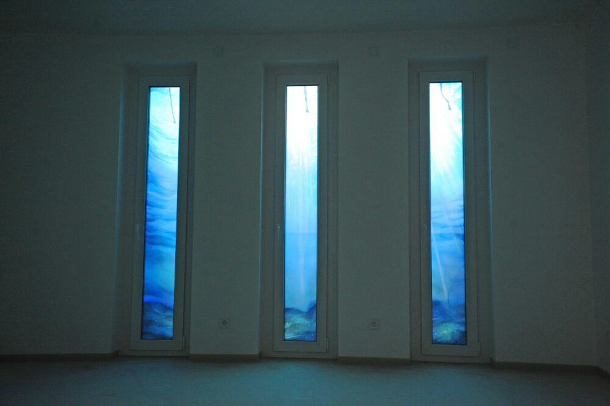 Die Fenster im „Raum der Stille“ sind von Künstler Thomas Jessen gestaltet worden.
