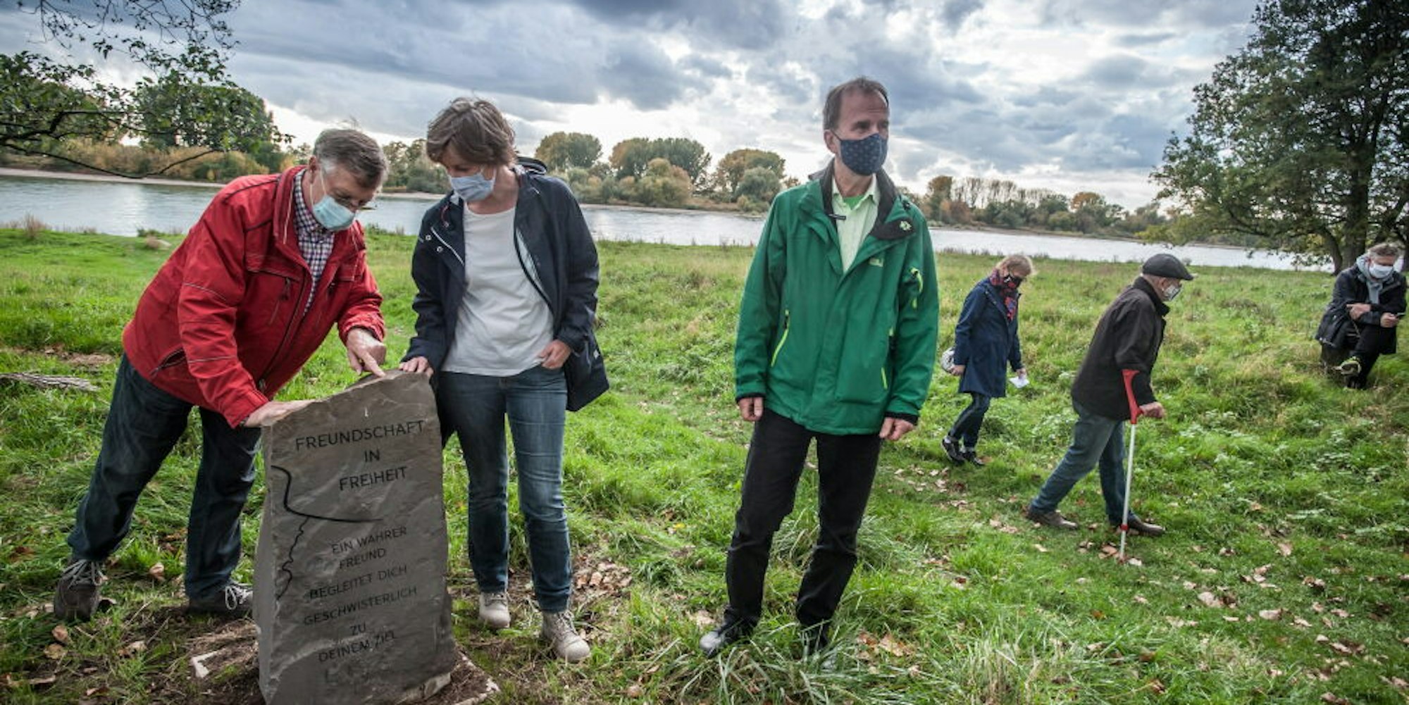 Leverkusen – „Freundschaft in Freiheit“ ist auf dem Findling eingraviert, der hinter der Wuppermündung am Hitdorfer Rheinufer steht. Darunter die sinnstiftenden Worte: „Ein wahrer Freund begleitet dich geschwisterlich zu deinem Ziel.“ Es ist der erste von fünf Steinen, die Stationen auf dem neuen Besinnungsweg von Rheindorf nach Hitdorf bilden.