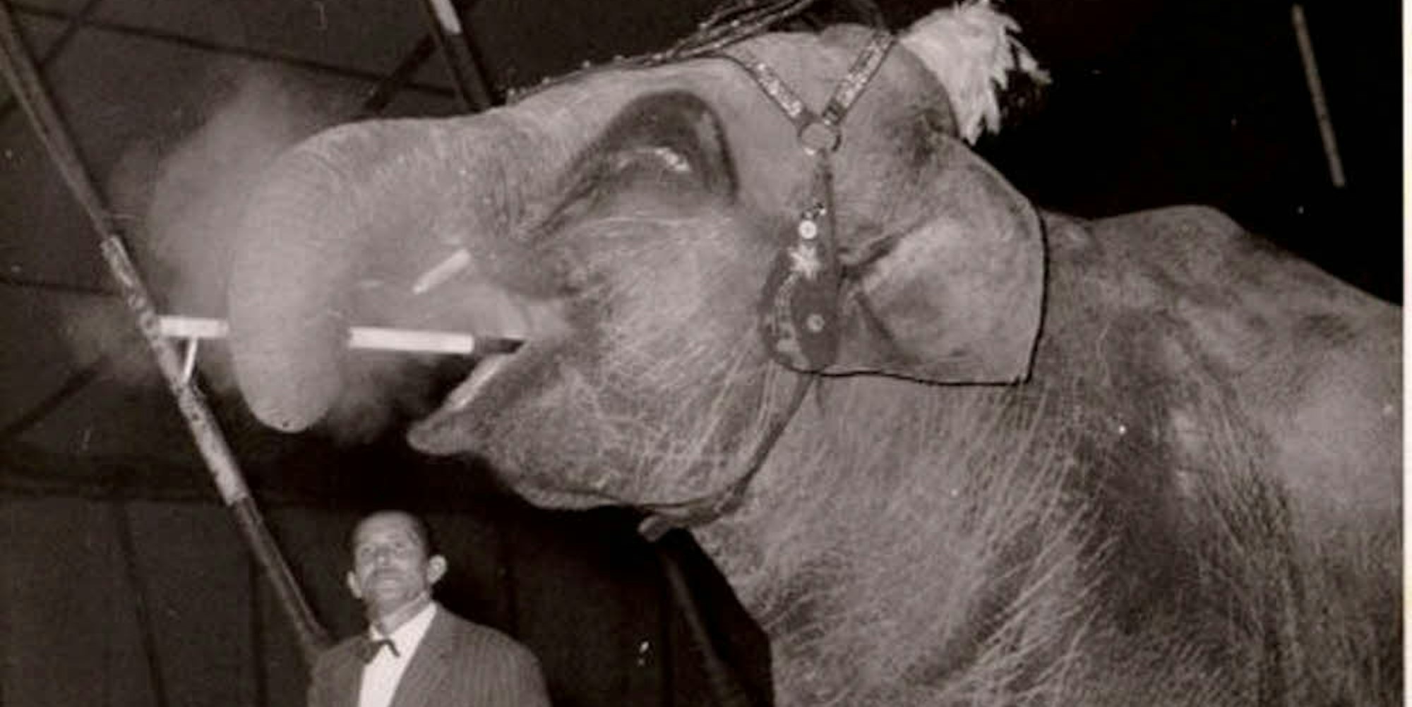 „Sie konnte angeblich zählen und rechnen und haben das Ergebnis dann mit den Füßen gestampft“, erzählt Odenthal. Von Nelly gibt es ein Foto mit einer riesigen, qualmenden Zigarette im Rüssel – ein aus heutiger Sicht sehr fragwürdiges Talent.