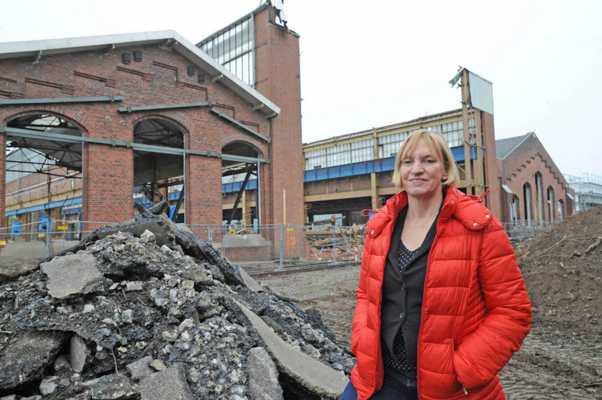 Aktuell ist der sogenannte Anger im Ostteil der Bahnstadt ihre Baustelle. Der Durchgang zur Technischen Hochschule zwischen den beiden Bauten der Cube Real Estate, dem Bürohaus längs der Werkstättenstraße und alten Hallen des Ausbesserungswerkes, deren Inneres zurzeit abgerissen wird, wird ebenfalls ansprechend gestaltet. An den Außenseiten sollen eine Andienungsstraße auf der einen, ein Rad- und Gehweg auf der anderen Seite entlangführen.