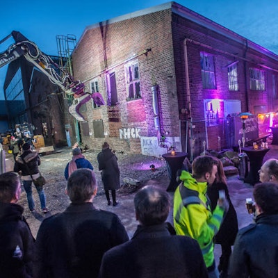 Ein paar Fassadenteile sind stehen geblieben, die die äußere Optik des künftigen Neubaus historisch prägen, eben den Charakter der Neuen Bahnstadt ausdrücken sollen. Doch eigentlich sind die Hallen weg, ist der Großteil der Gebäudesubstanz beseitigt.
