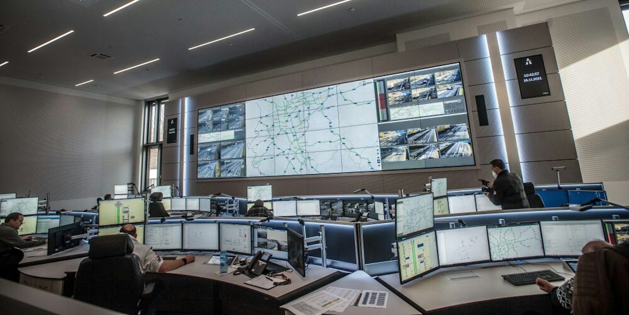 Aus der Verkehrszentrale NRW der Autobahn GmbH in Leverkusen-Opladen wird der Verkehr auf allen Autobahnen im Land geregelt.