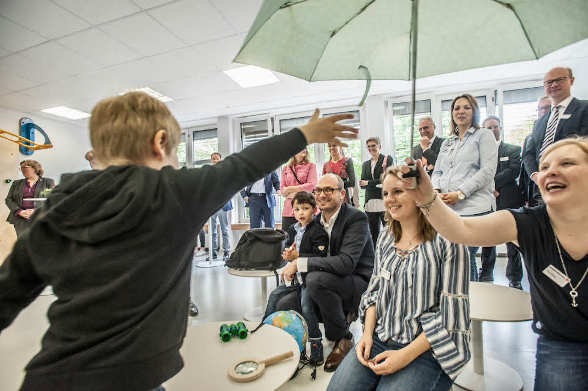 Globus, Fernglas, Kamera, Lupe, Regenschirm: Die Kinder zeigten, was man als „Weltentdecker“ so braucht.
