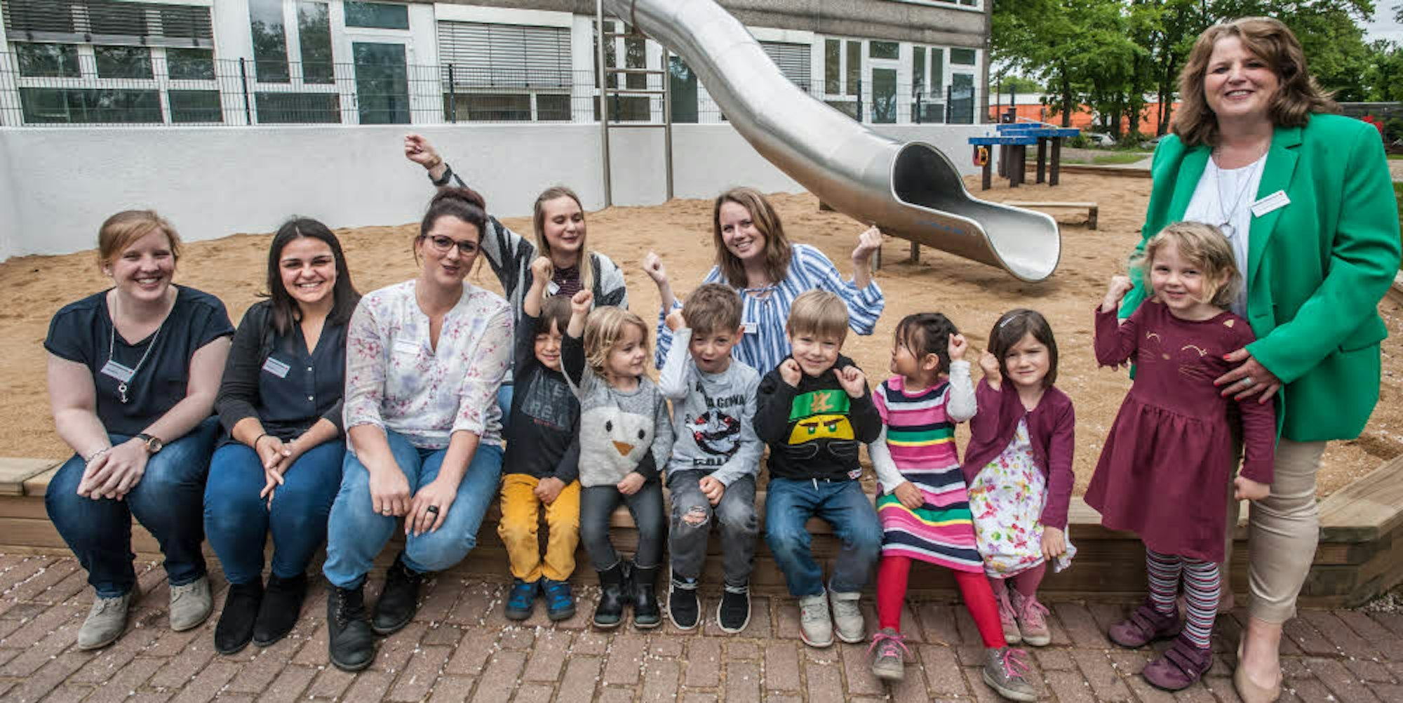 Die Rutsche ist gar kein Spielzeug: Sie dient als Rettungsweg für Kinder, die im ersten Stock der Bayer-Kita betreut werden. Auch Leiterin Astrid Steinhoff-Faubel (rechts) freut sich über die Wiedereröffnung.
