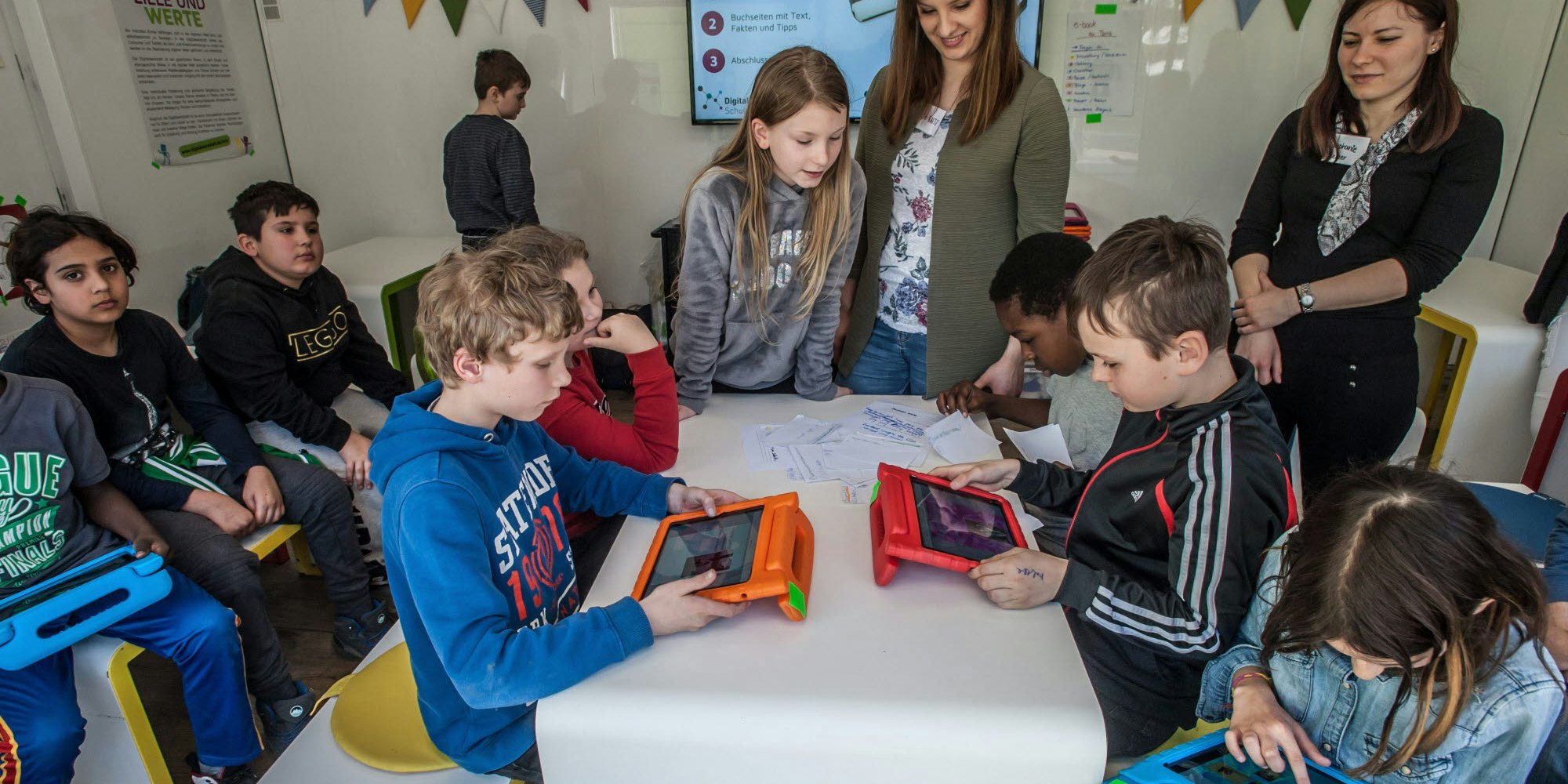 Die Klasse 4b der Grundschule Heinrich-Lübke-Straße konnte in der Digitalwerkstatt mit Apps und Tablets lernen.