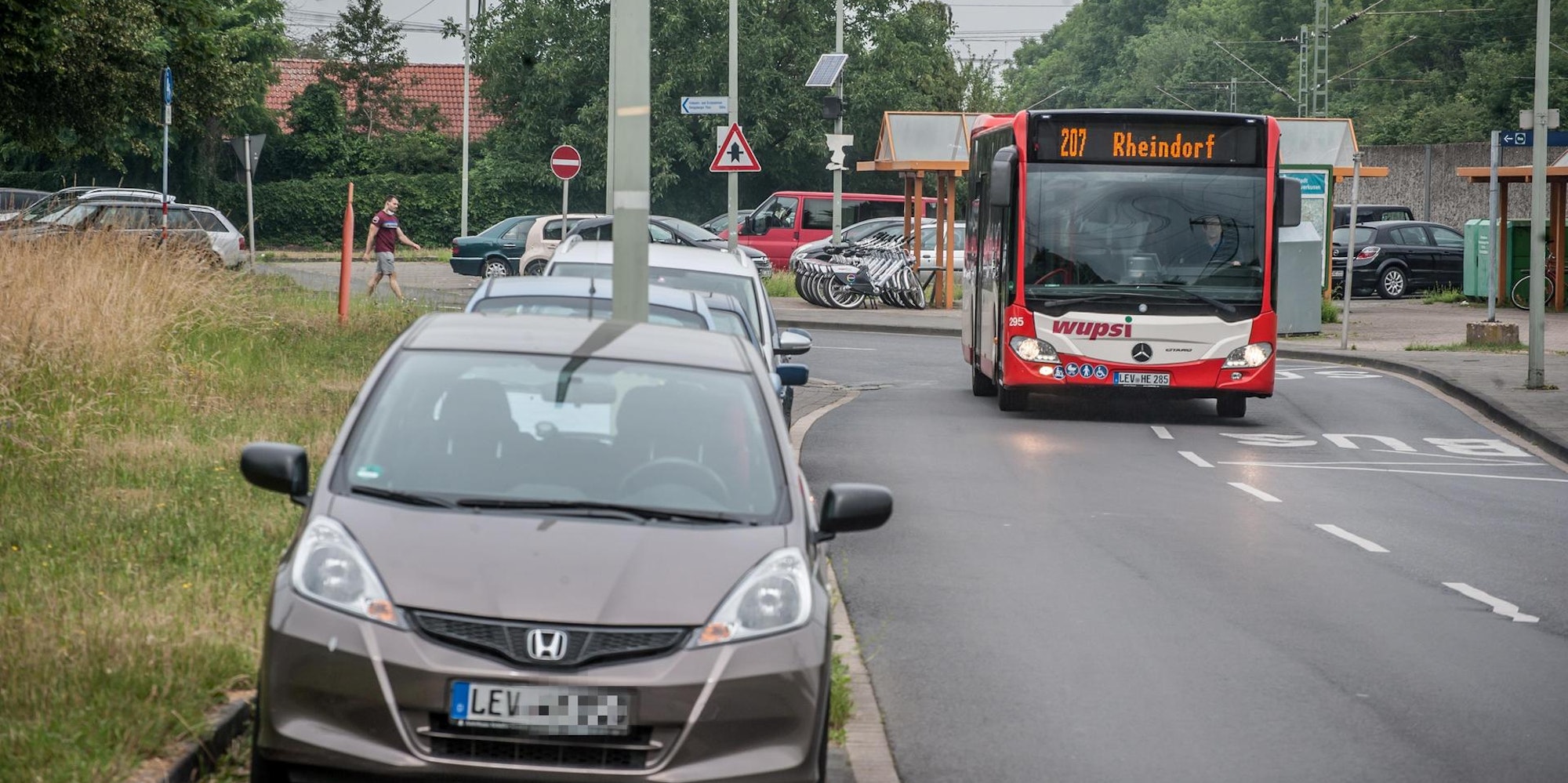 Leverkusen – Pendler kennen das seit jeher: Am Rheindorfer Bahnhof wird um jeden Parkplatz gekämpft. Umso ärgerlicher, dass wieder ein paar wegfallen, auf Anordnung der Bezirksregierung: Der Kurven-Parkstreifen an der Solinger Straße wird um 25 Meter gekürzt – macht fünf von acht Plätzen. Hintergrund ist die Beschwerde des wegen Insolvenz dort gar nicht mehr aktiven Leichlinger Busunternehmers Rainer Hüttebräucker. Er hatte im Dezember in Köln darüber geklagt, dass es in der Kurve am S-Bahnhof zu eng ist: Begegneten sich dort zwei Busse, müsse einer zurücksetzen. Die Bezirksregierung reagierte schnell; zwei Wochen später gab es einen Ortstermin mit Polizei und Stadt. Ergebnis: Die Situation „wird insgesamt als gefährlich eingestuft“, sagt Nicole Beißel von der Bezirksregierung.