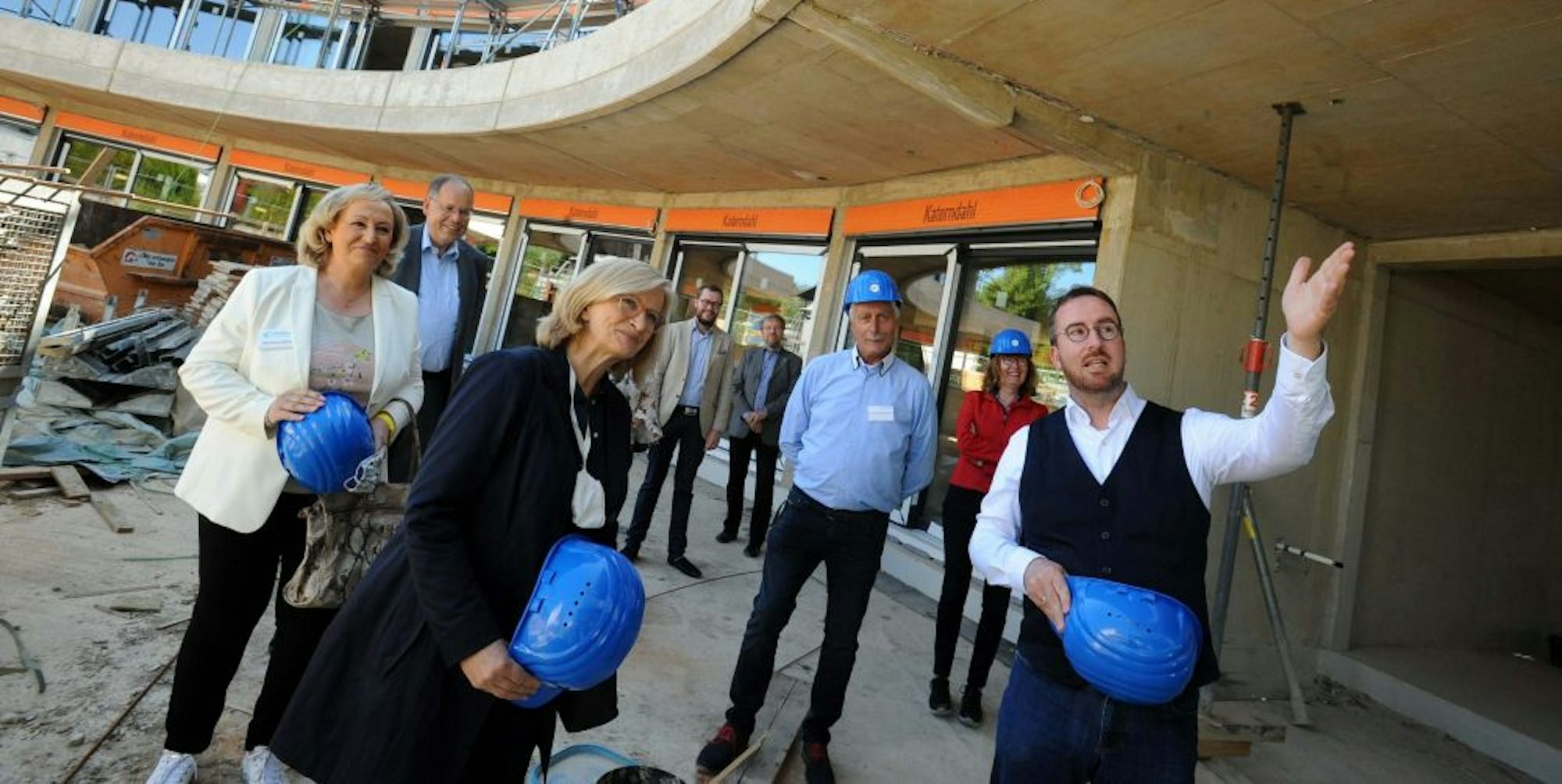 „Pallilev“ feiert Richtfest: Der Bau des Hospiz’ liegt im Zeitplan. Schauspielerin Johanna Gastdorf (vorne) war zu Gast.