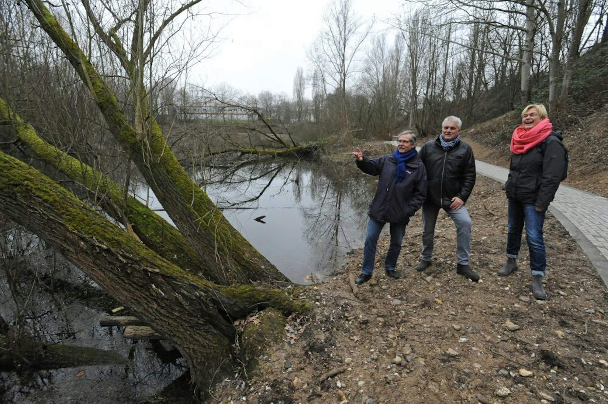 Bernhard Cremer, Lothar Schmitz und Silke Thyssen (v. l.) vom Fachbereich Stadtgrün haben den Auftrag der Umgestaltung umgesetzt und der Natur dabei Raum gegeben.