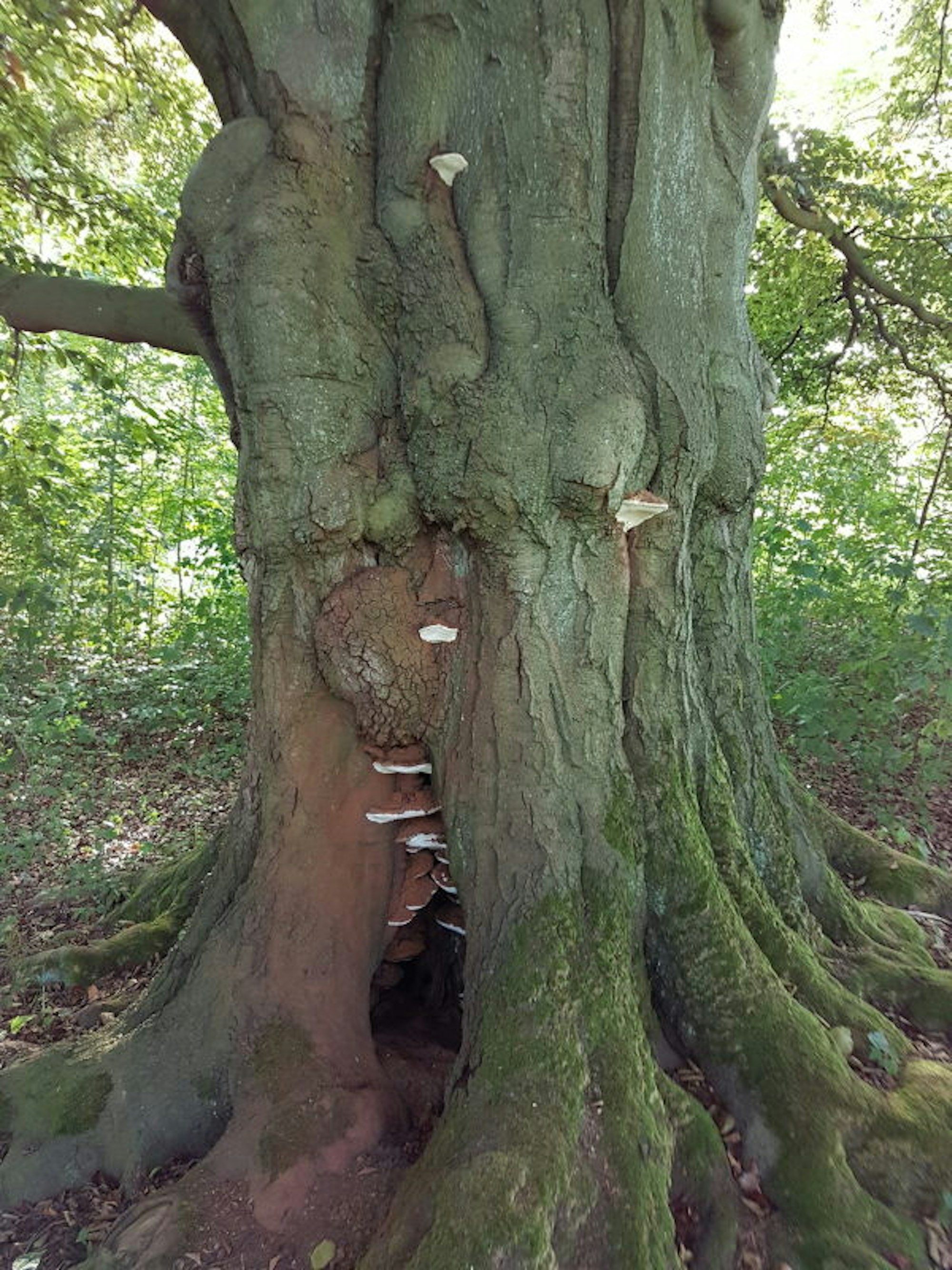 Inzwischen hat der zur Sicherheit der Parkbesucher eingezäunte Baum schon manchen Sturm überstanden. Und Klug attestiert nach seinem neuerlichen Besuch in Leverkusen: „Die Blutbuche ist immer noch vital, aber es gibt mehr Pilzfruchtkörper des Lackporlings. Von dem damals prognostizierten Brandkrustenpilz fehlt nach wie vor jede Spur. Also gibt es auch aktuell kein wirkliches Problem.“
